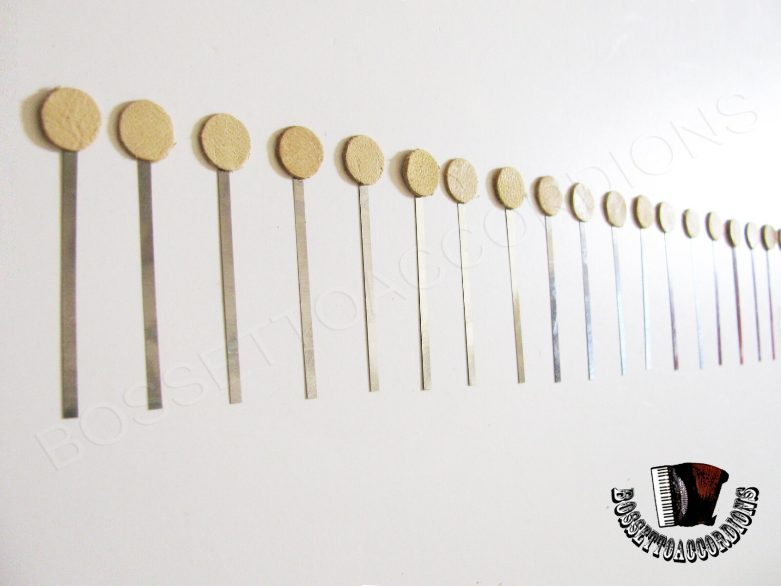 как выглядит SET OF 24 Accordion REED LEATHER VALVE BOOSTERS 49 x 1.50 mm Leather Dot фото