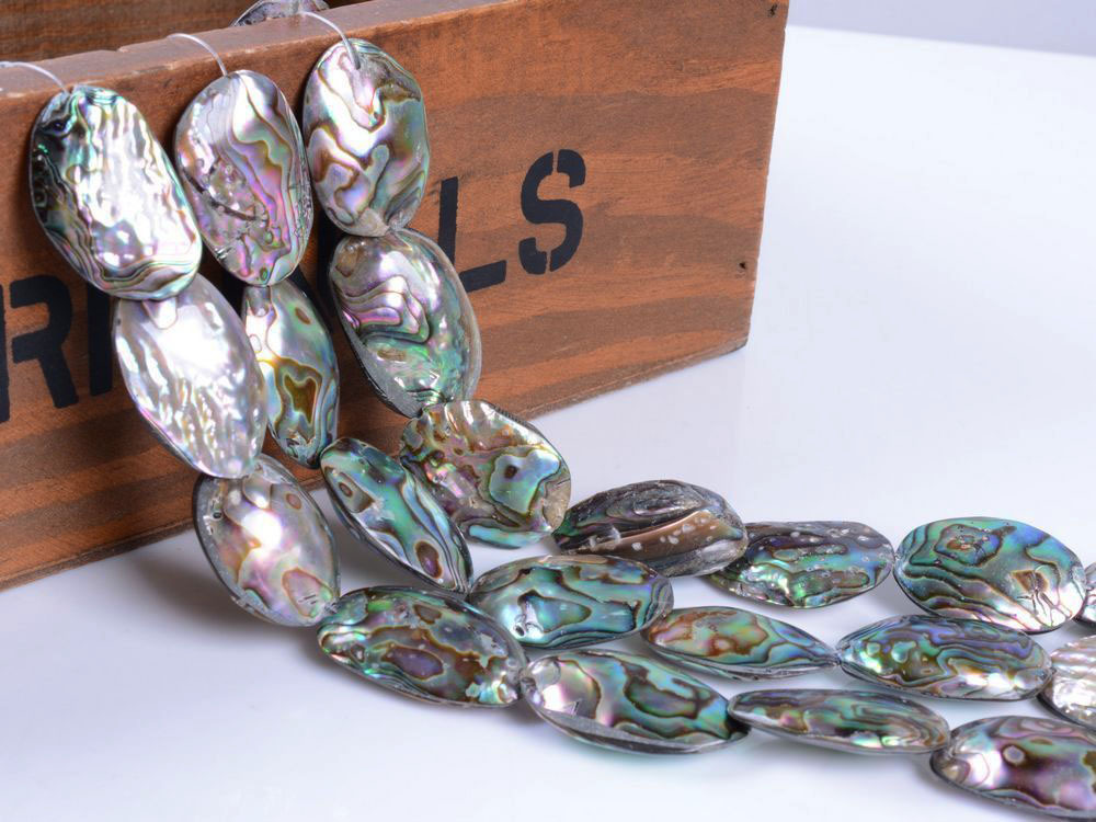 как выглядит jj0202 26mm to 29mm Abalone shell oval loose gemstone beads 16" фото