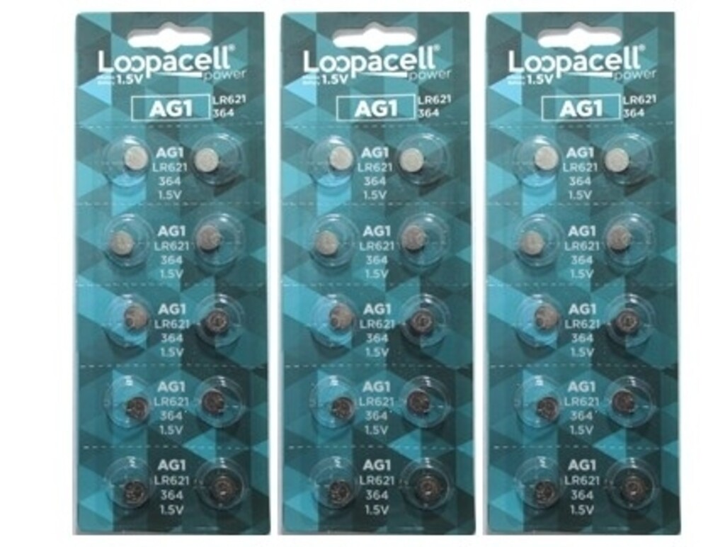 60 AG1 Watch Batteries - SR621, SR621SW, 364, 164 By LOOPACELL Brand New