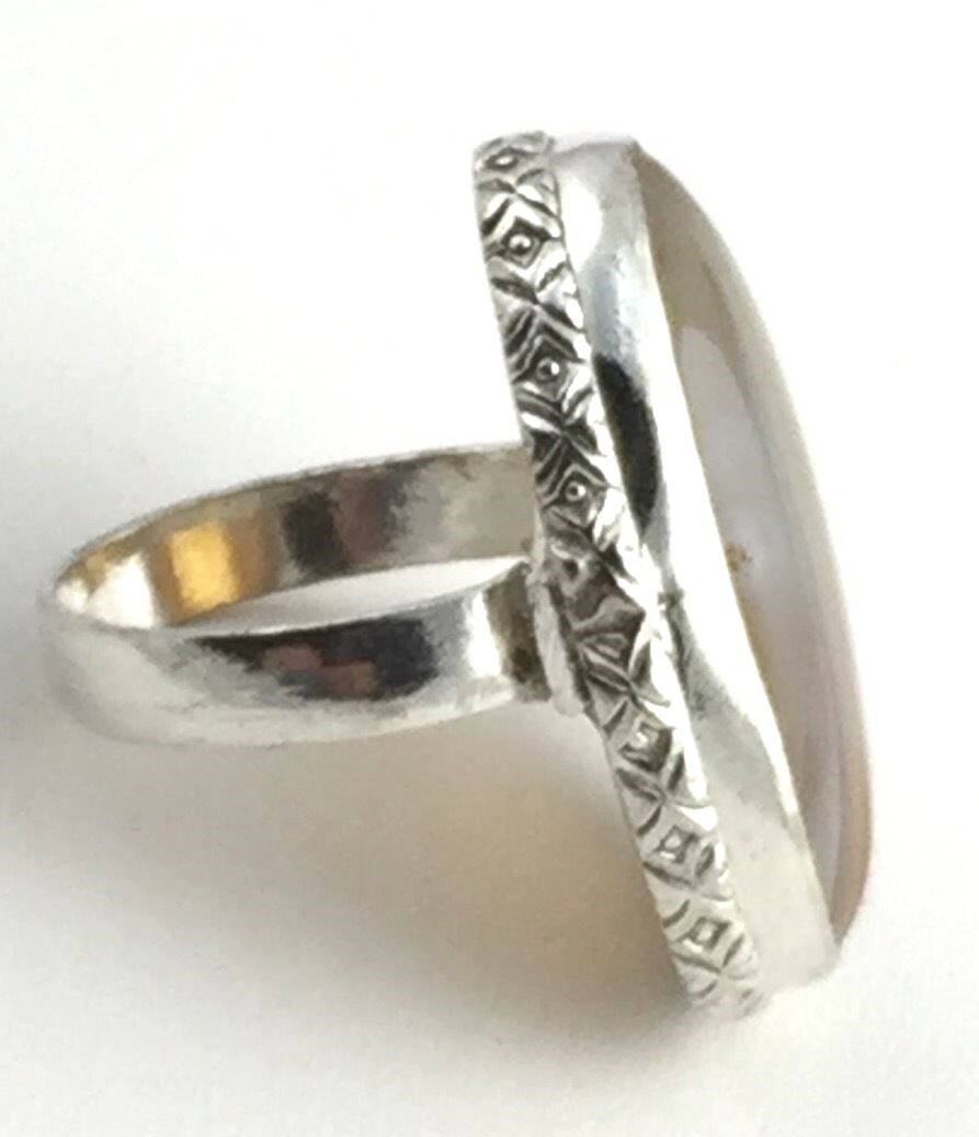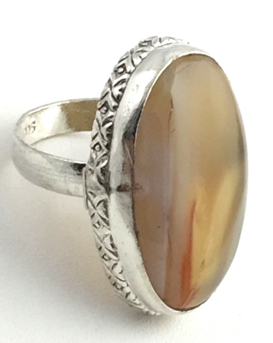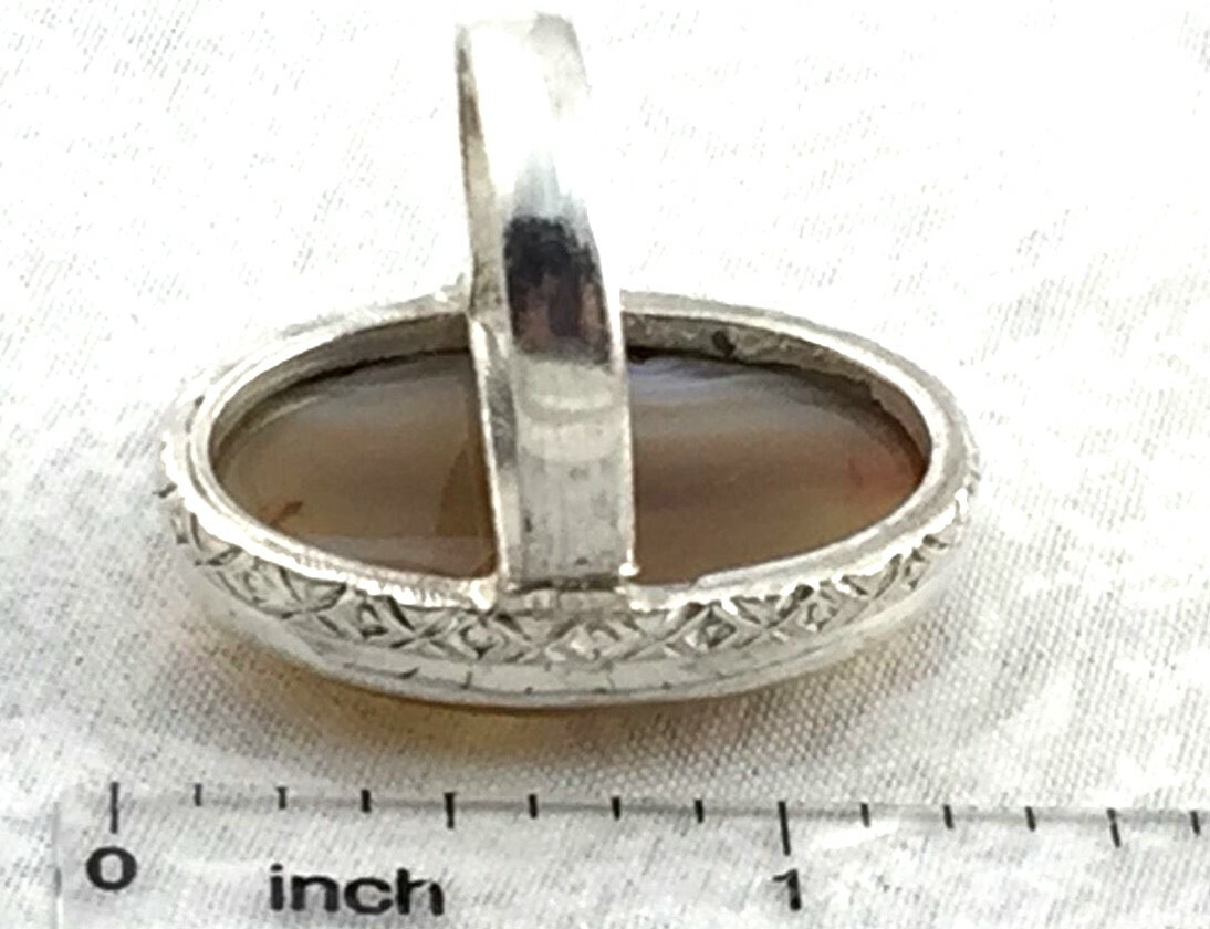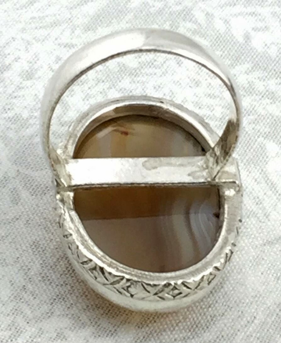 как выглядит Vintage .925 Sterling Silver Decorative Oval Lace Trim Agate Ring - Size 6.5 фото