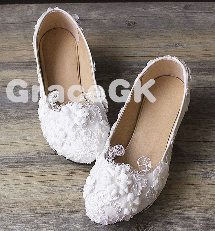 Lace white ivory Flower Wedding shoes Bridal flats low high heel pump size 5-12