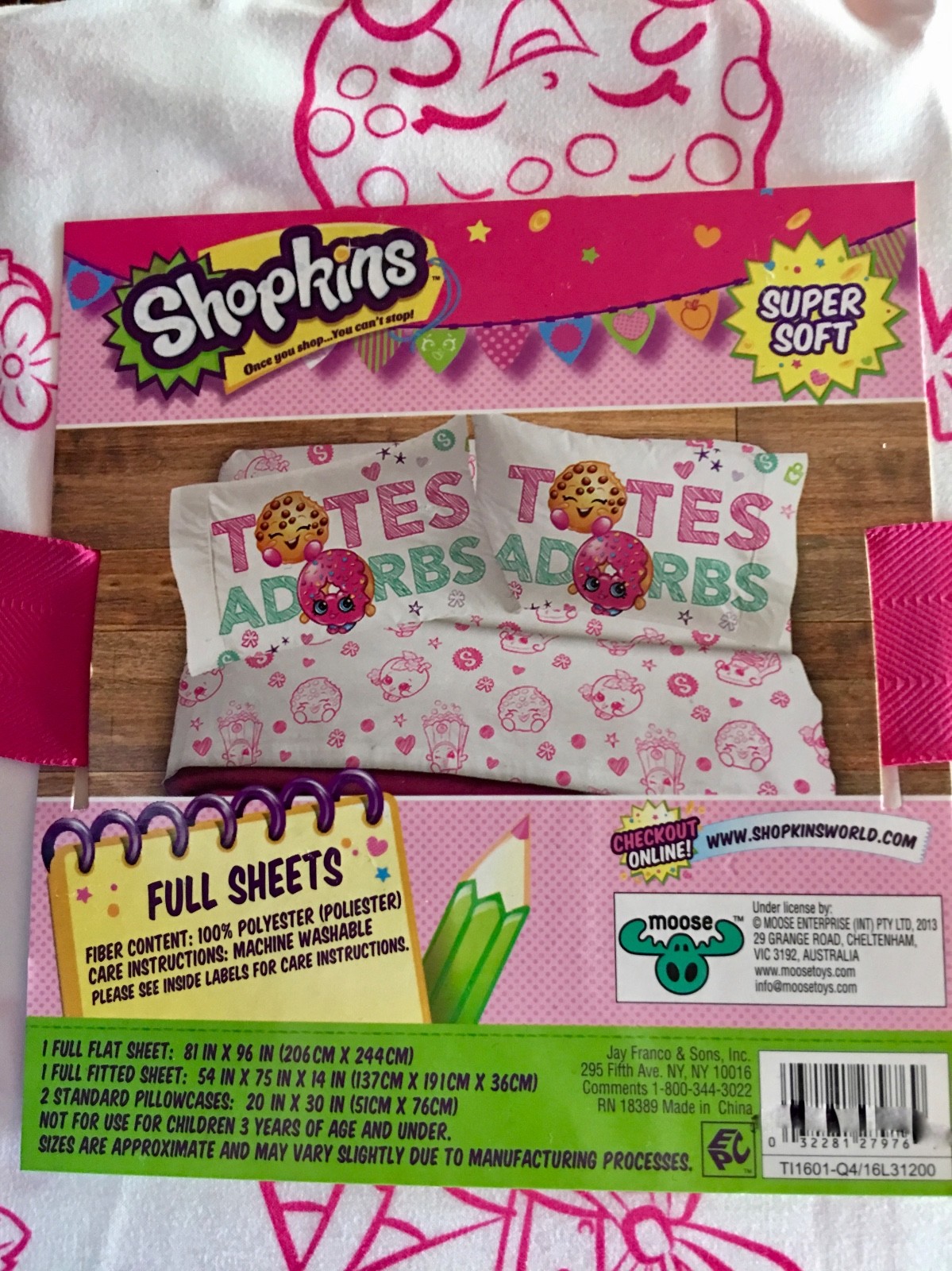 Shopkins TOTES ADORBS FULL 4 PIECE Sheet Set NEW WITH TAGS