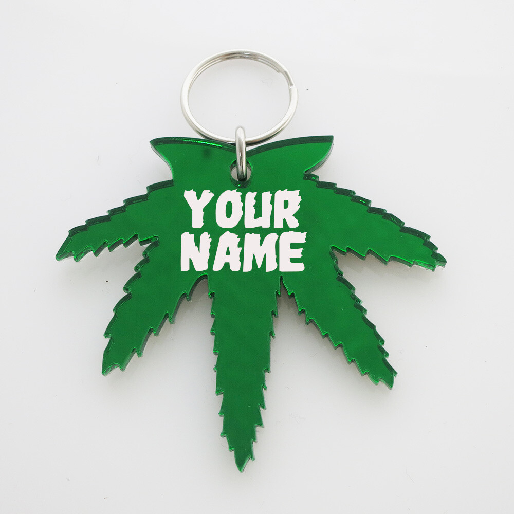 Pot Leaf Weed Key Chain - Personalized Free - Engraved Keyring