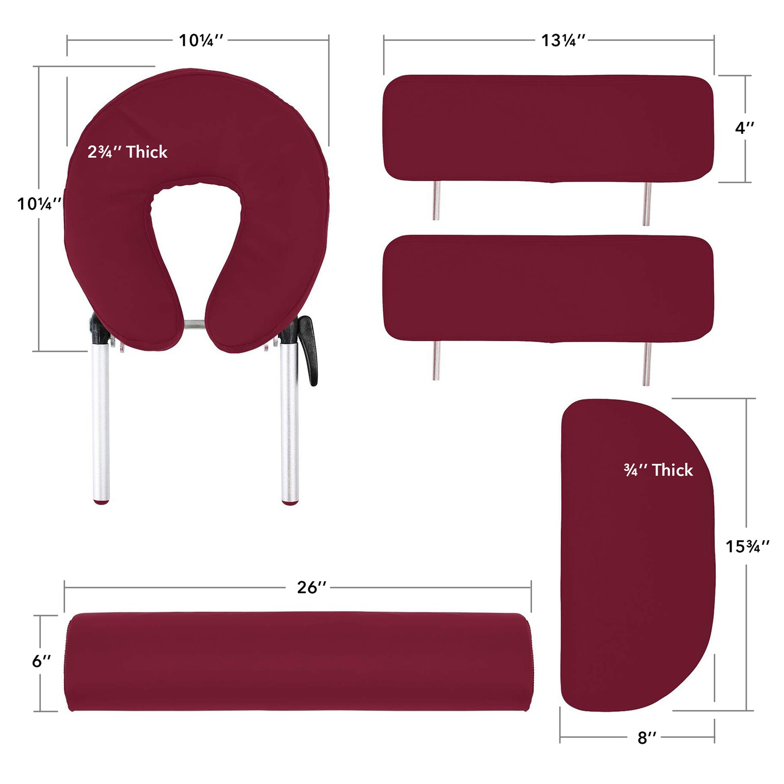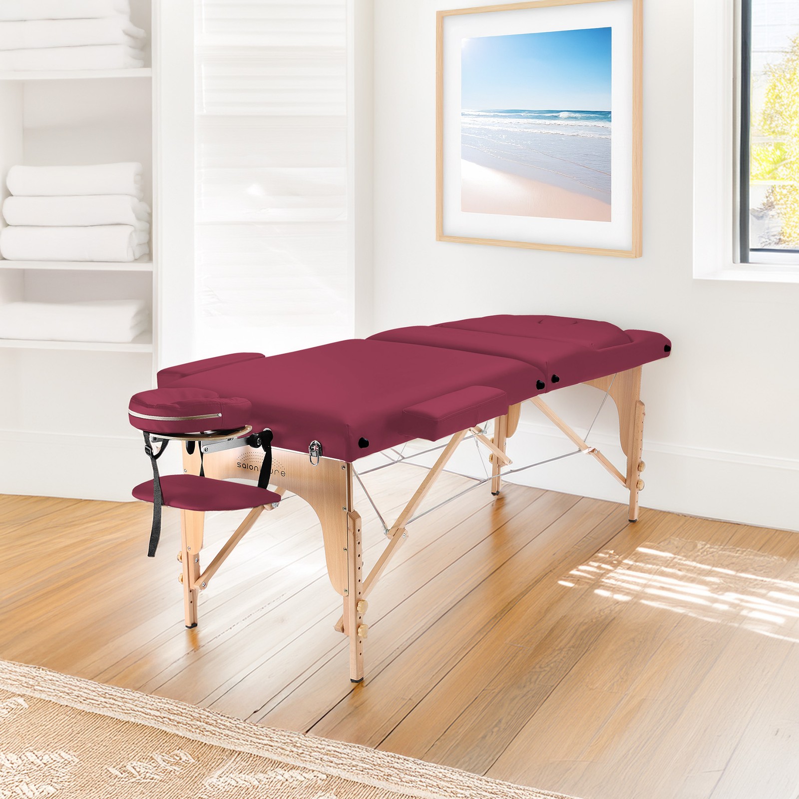Portable Burgundy Massage Table with Bolster and Tilt Backrest