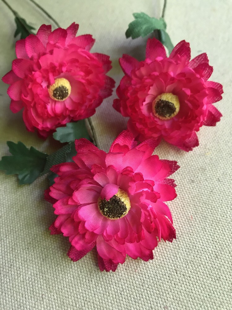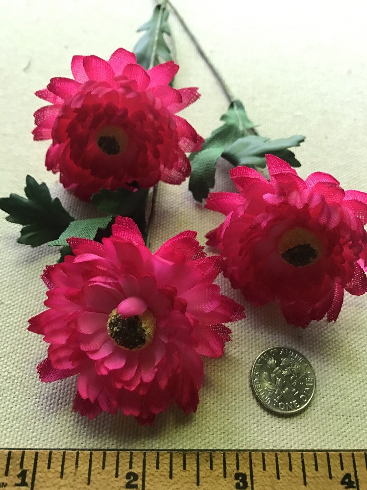 как выглядит Vintage Millinery Flower 2" Fluffy Aster Hot Pink 3pc for Hat Wedding Hair NY фото