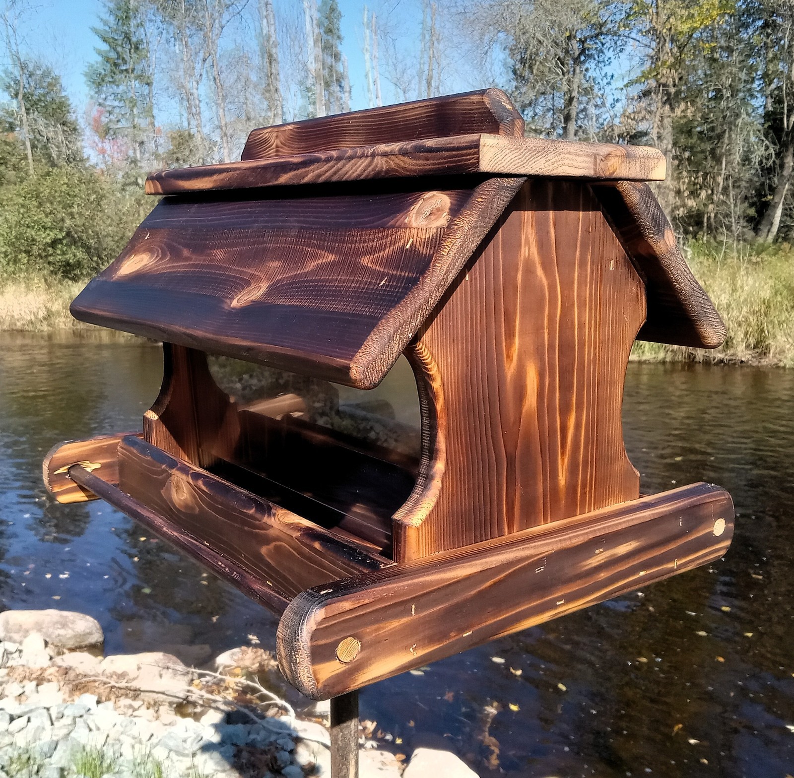 как выглядит 16 Inch cedar wood post mount bird feeder фото