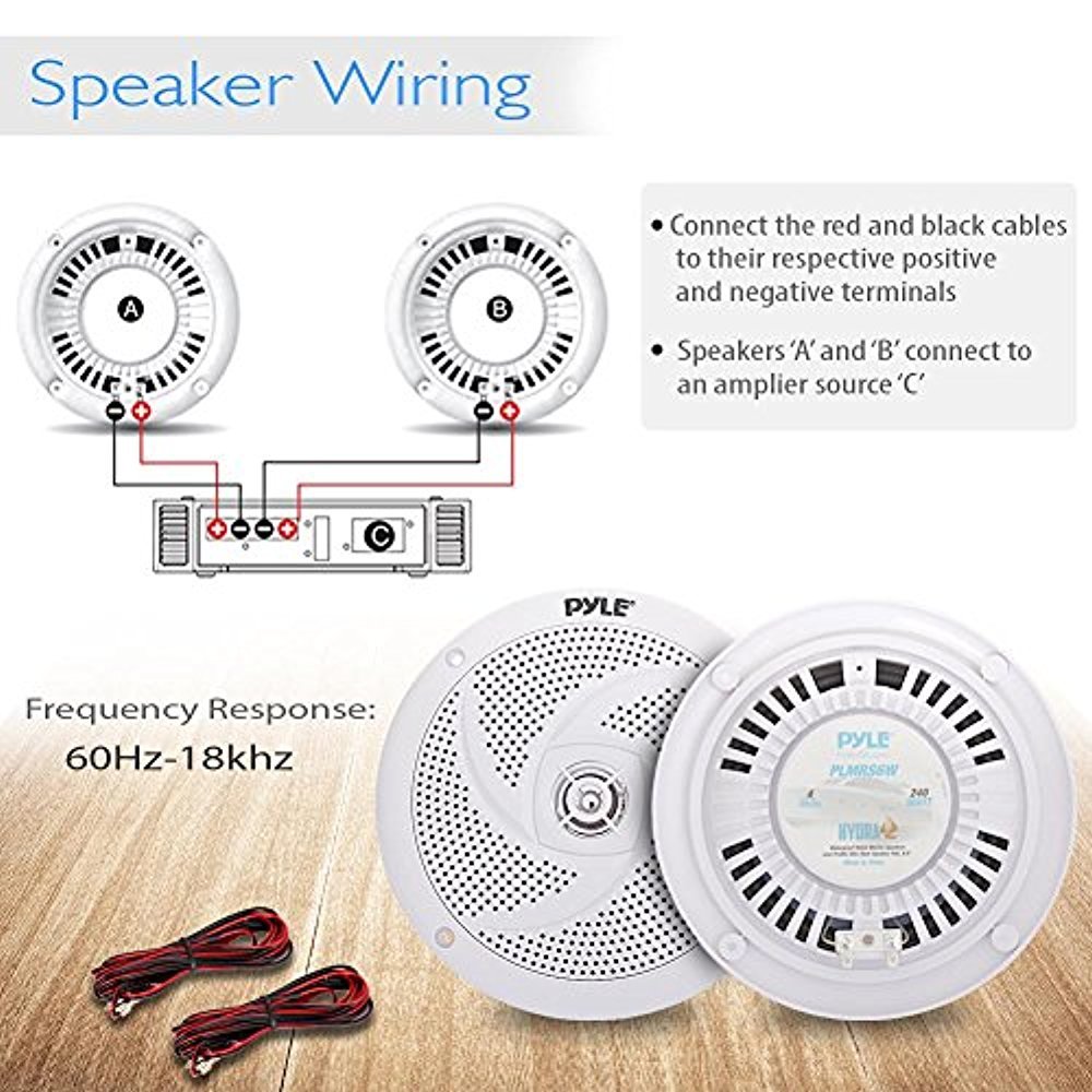 Waterproof Rated Marine Speakers, Low-Profile Slim Pair, 6.5''-inch 240 Watt