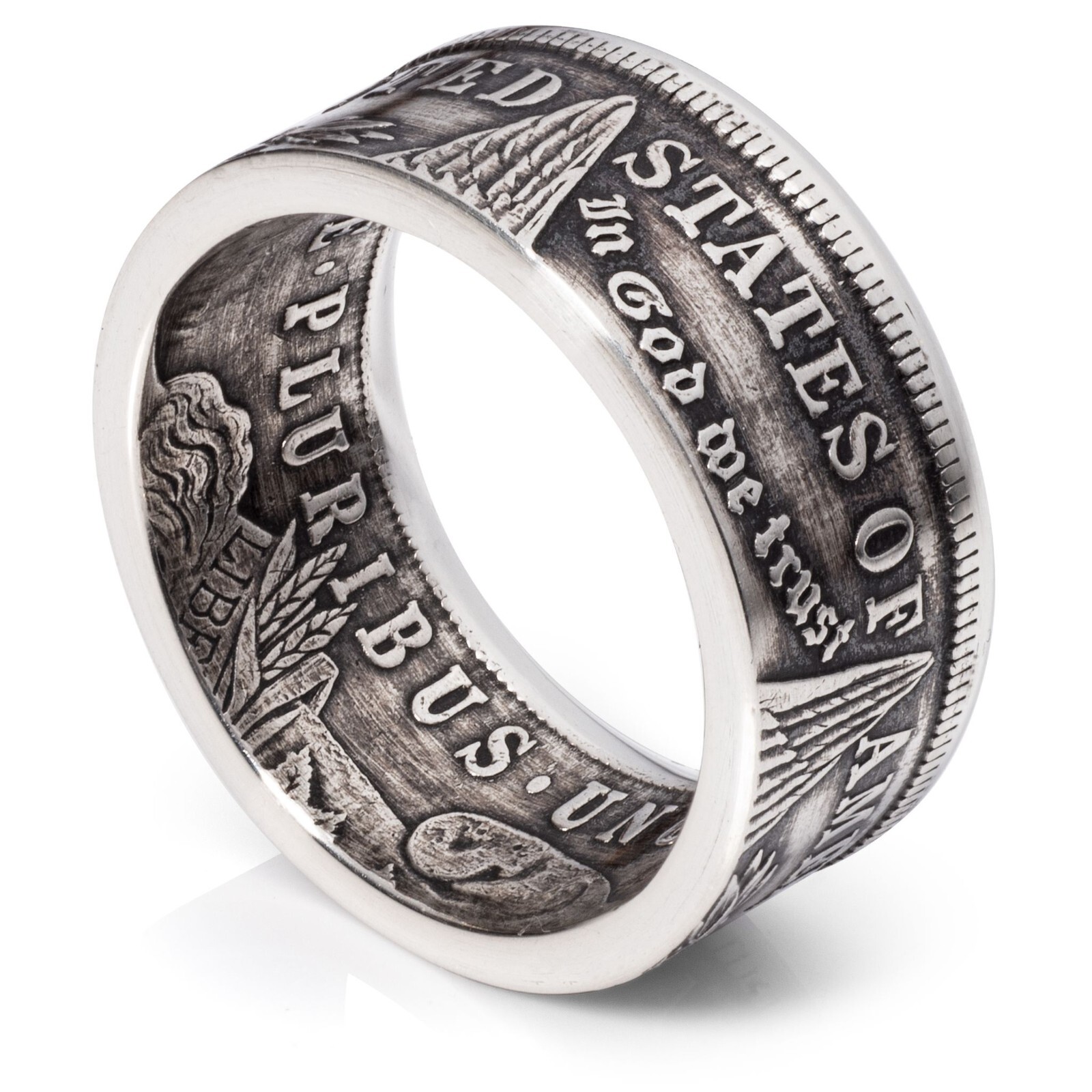 Morgan Silver Dollar Coin Ring - Sizes 7 to 17 - Patina Finish 10mm