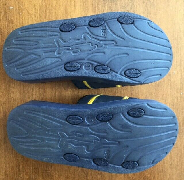 Boys OPEN TOE SANDALS SLIDES by FRISKY Blue and Yellow HOOK TAPE CLOSURE Small