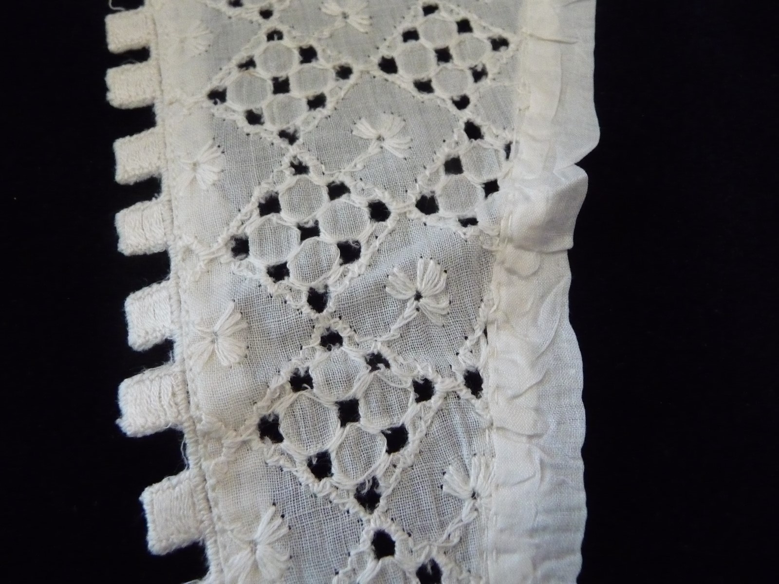 10/1 vtg dress collar white fabric sweater blouse eyelet cut embroidered