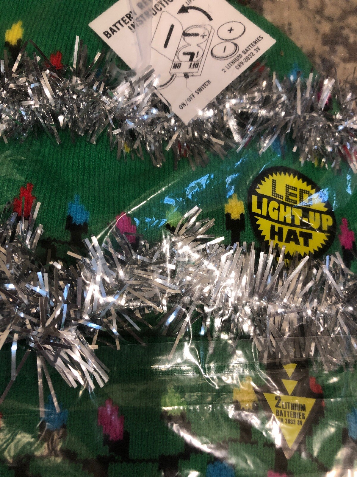 New LED Light-Up Ugly Christmas Lights Beanie Pom Tinsel Hat Adult One Size