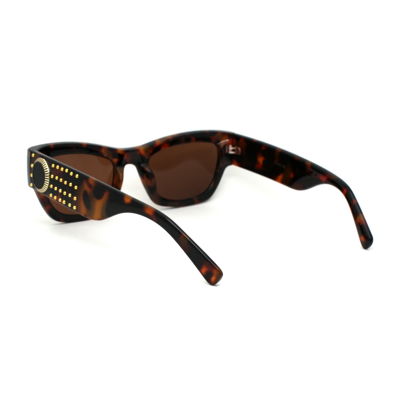 Womens Hard Studded Punk Jewel Rectangular Plastic Sunglasses