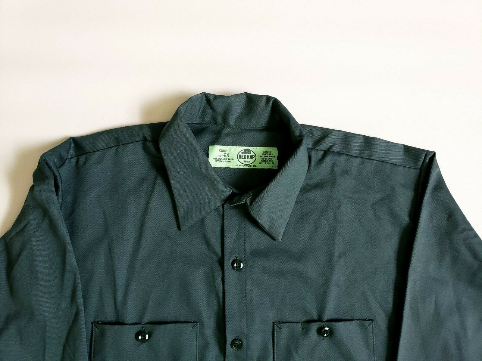 Industrial Work Shirt Two Pockets Men Dark Green Long Sleeve Red Kap