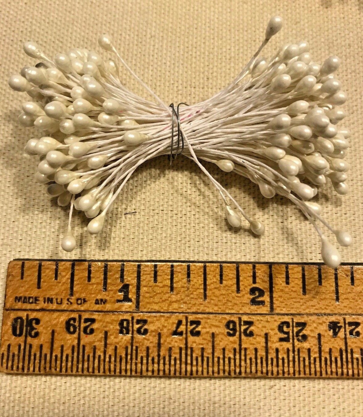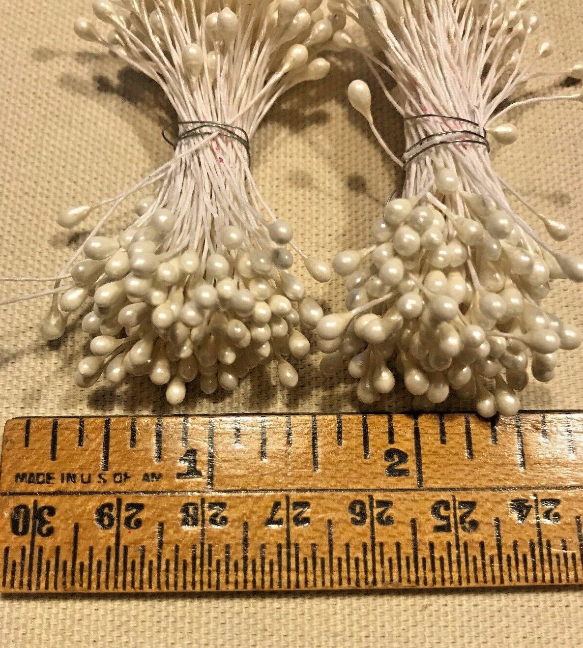 Vintage Millinery Flower Stamen 2 bunch Lot White Pearl tips on both ends Y254a