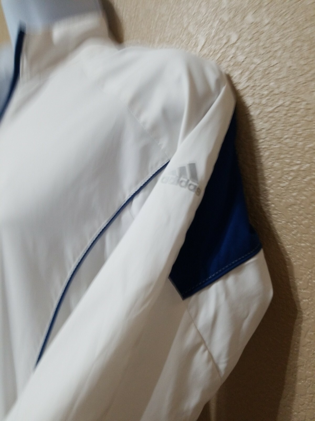 как выглядит Adidas Climacool Womens White Navy Full Zip Track Jacket w/Pockets-Size Small фото