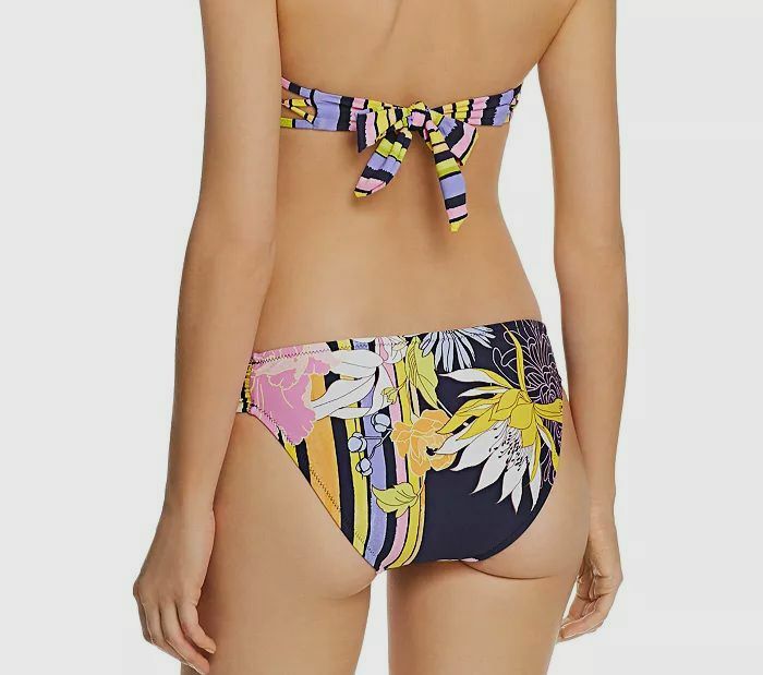 как выглядит 99 Trina Turk Swimwear Women Blue Yellow Floral Shirred Hipster Bikini Bottom 4 фото