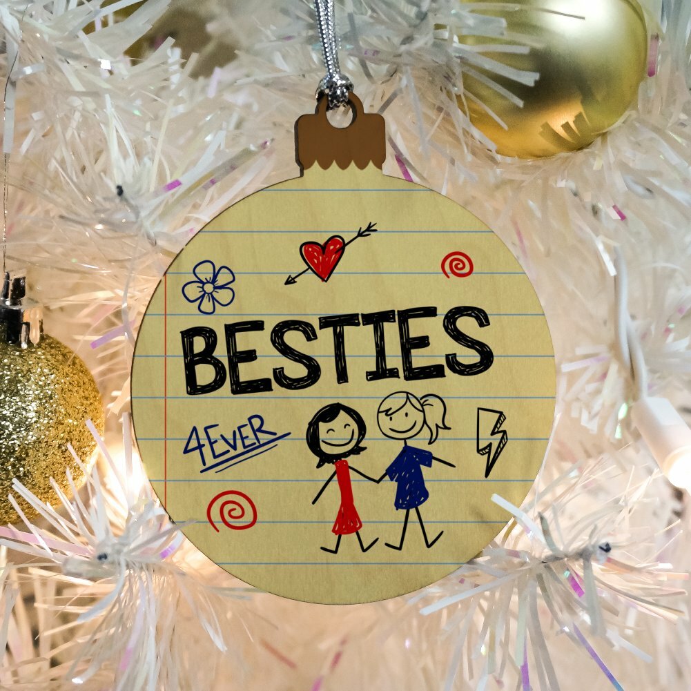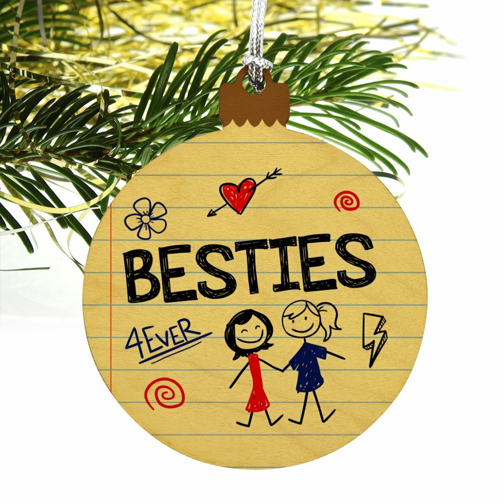 Besties Best Friends Wood Christmas Tree Holiday Ornament