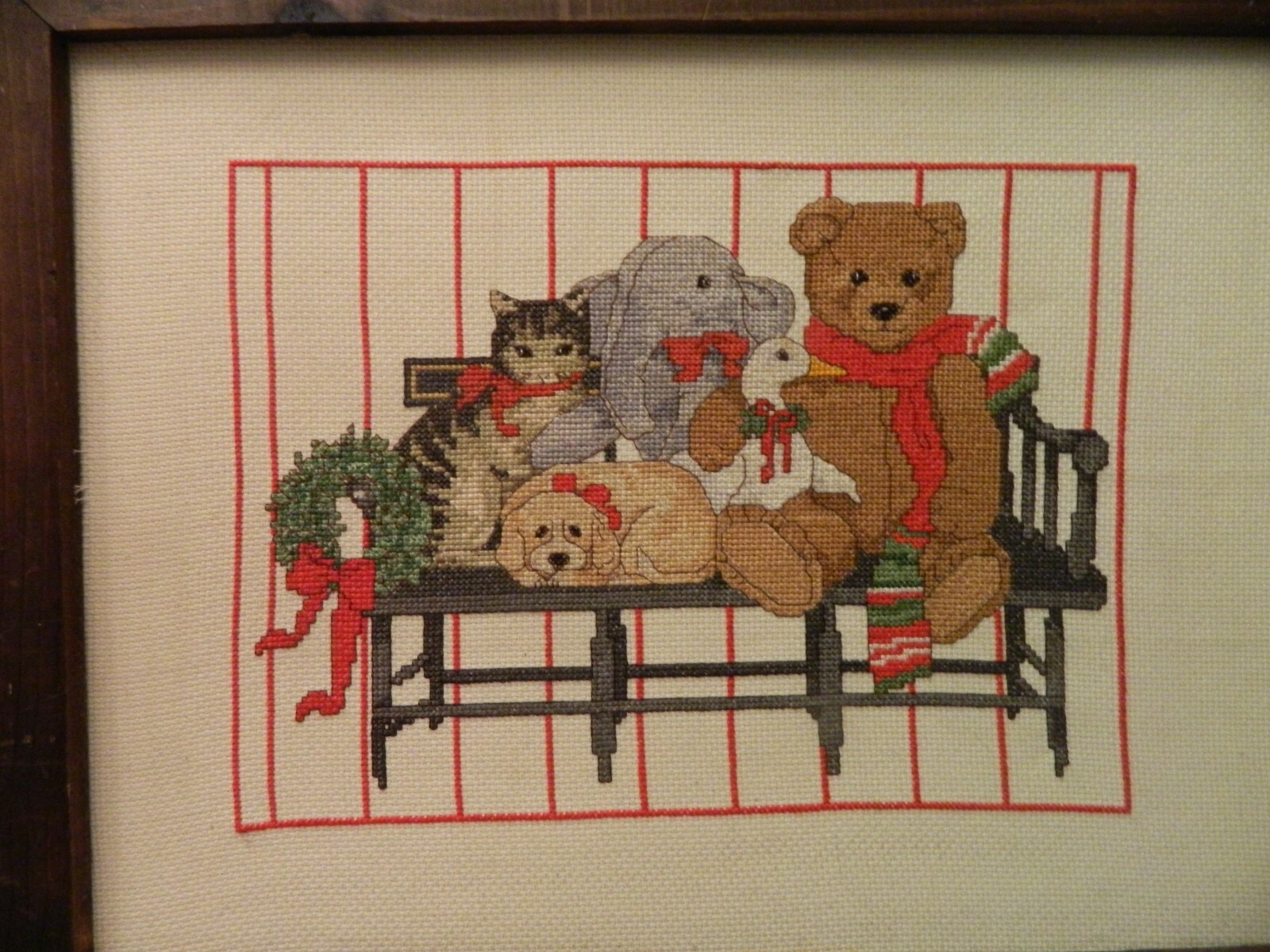 как выглядит VINTAGE 15 1/2" x 11 1/4" FRAMED CHRISTMAS NEEDLEPOINT WITH ANIMALS - CUTE фото
