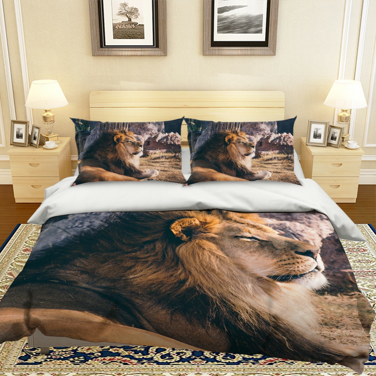 3D Lazy Lion S073 Animal Bed Pillowcases Quilt Duvet Cover Set Queen King Sunday