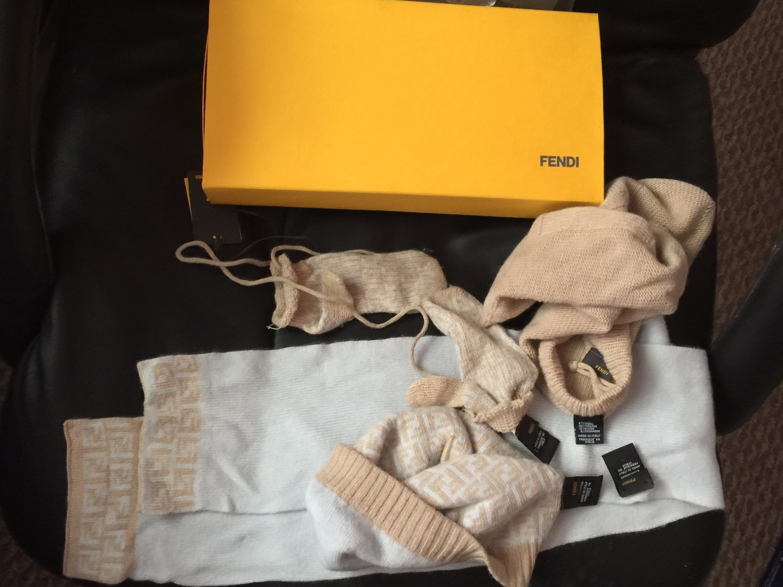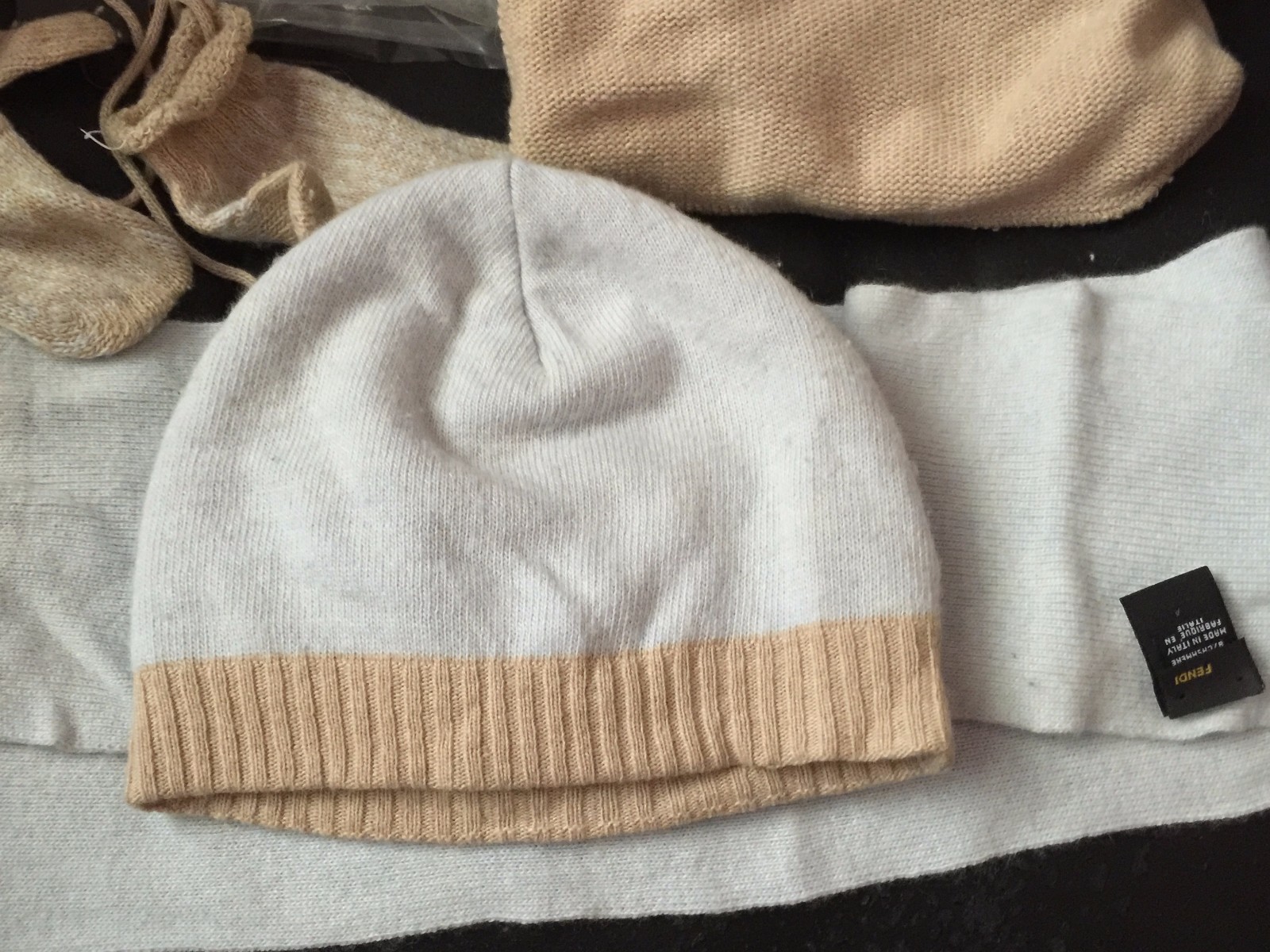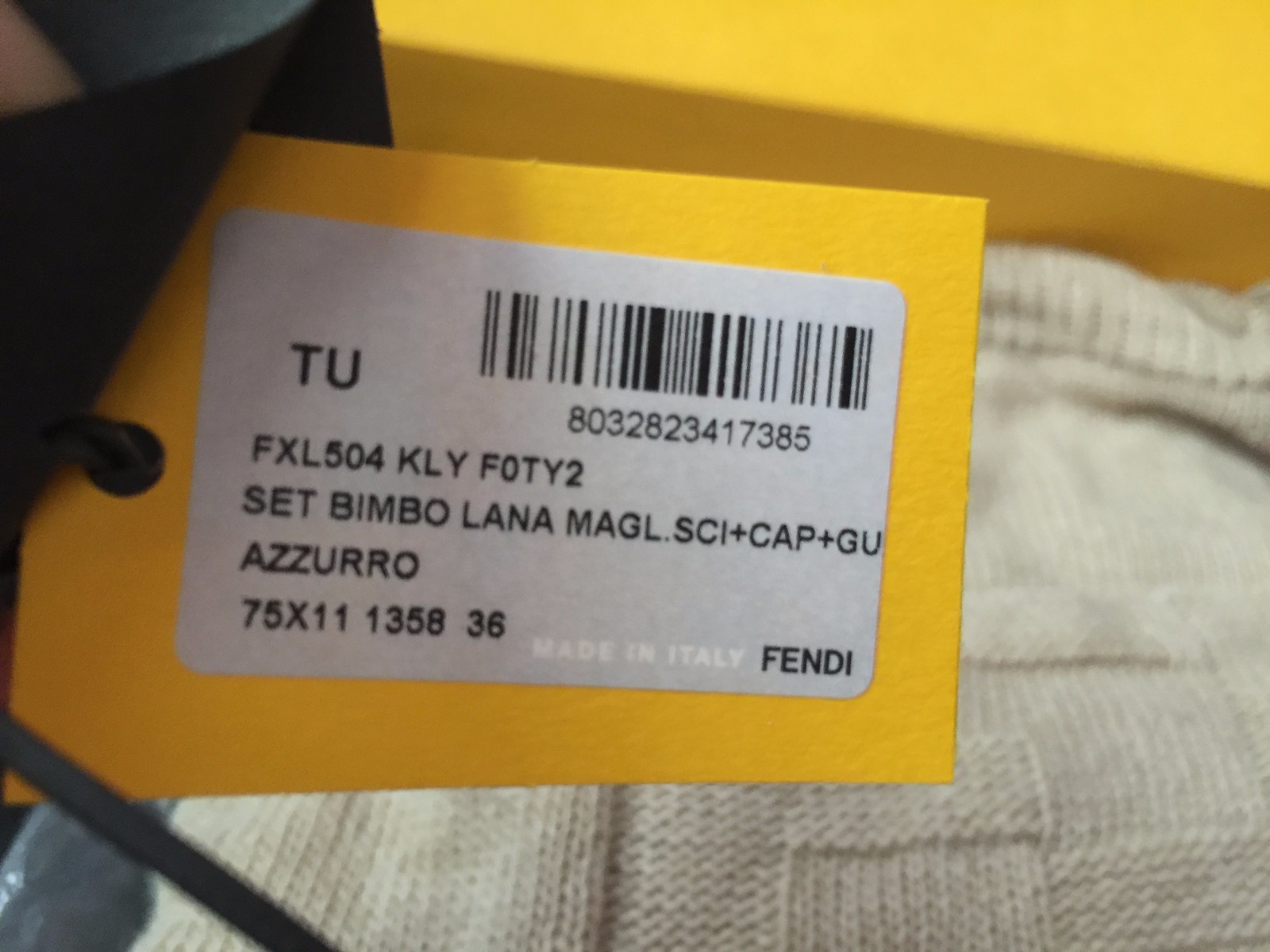 как выглядит FENDI BABY SET SCARF GLOVES HAT BAG WOOL F0TY2 MITTENS WINTER SIGNATURE PRINT фото