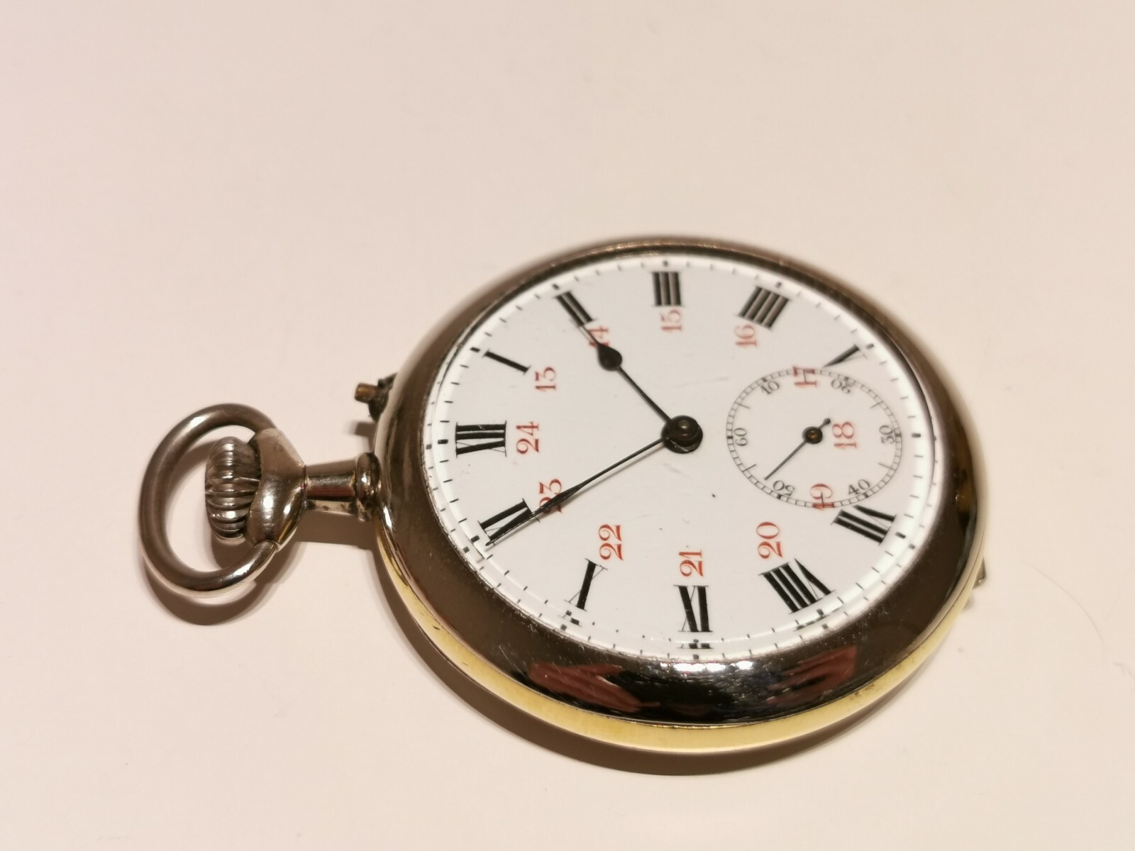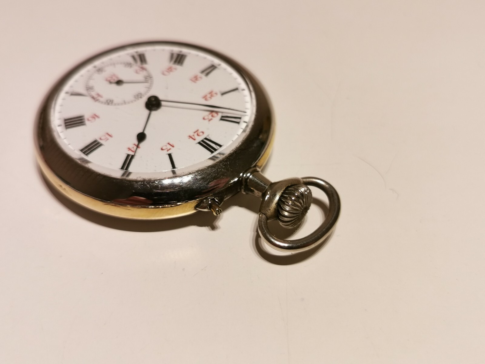 как выглядит ANTIQUE SWISS UNBRANDED OPEN FACE POCKET MENS WATCH WITH NICE TWO TONE DIAL фото
