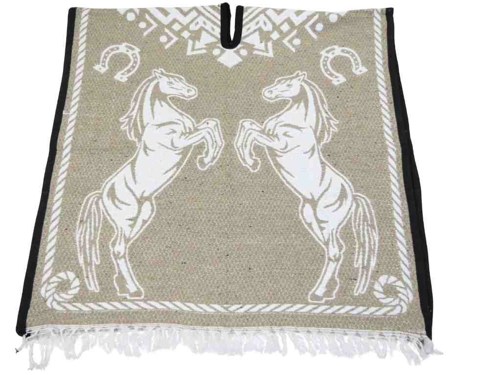 Mexican Cobija Blanket Poncho Gaban Horse Design Reversible Unisex