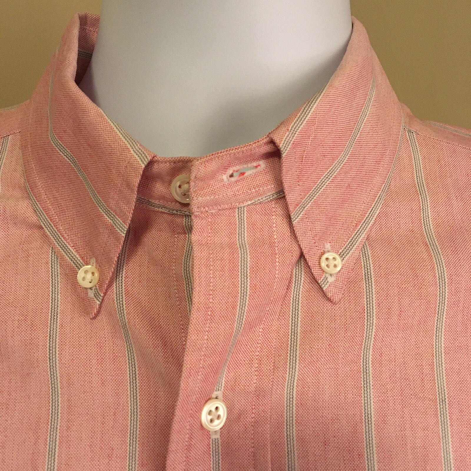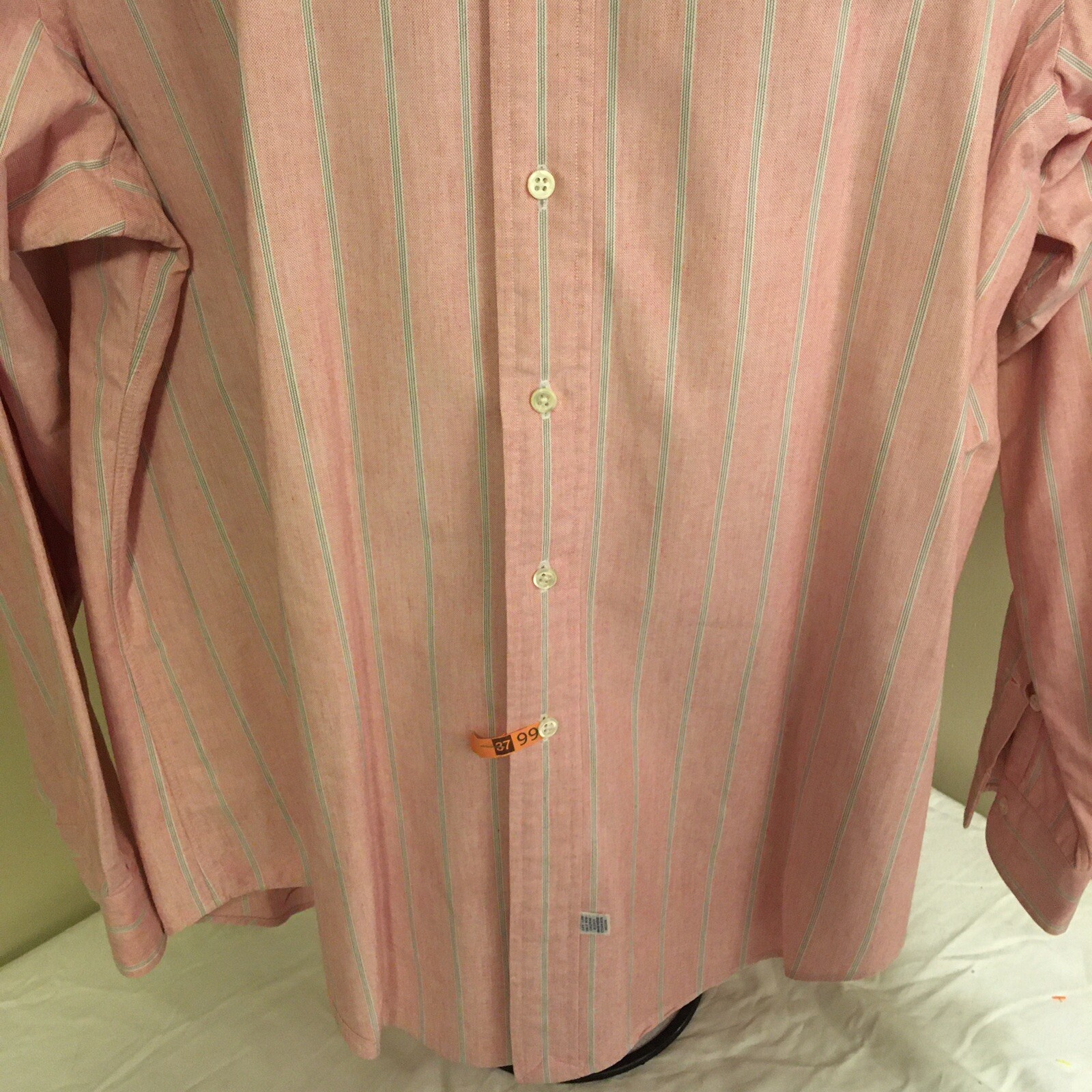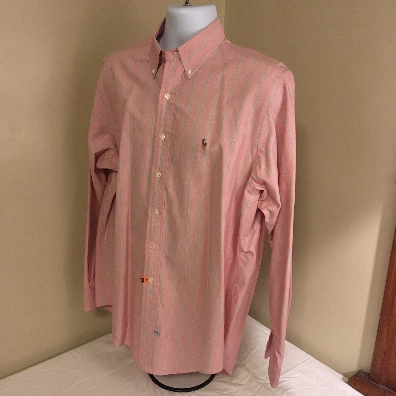 как выглядит Ralph Lauren Mens Dress Shirt Pink w Blue White Stripes 100 Cotton 16.5 35 FS фото