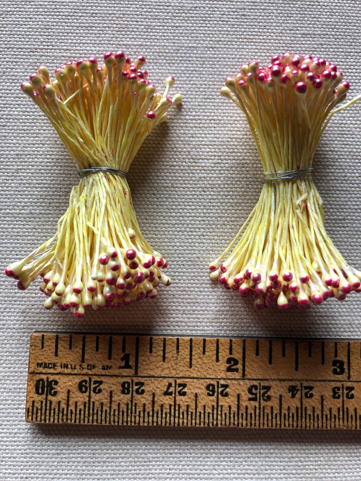Vintage Millinery Flower Yellow Red Pearl Stamen 2 bunch Lot Unused Stock HaA