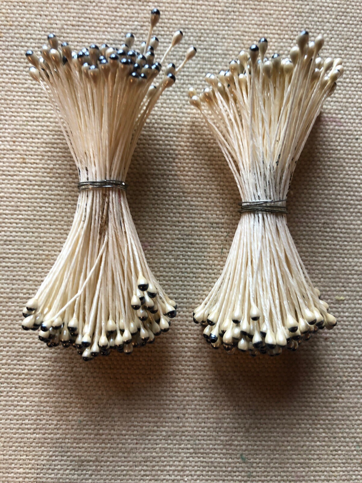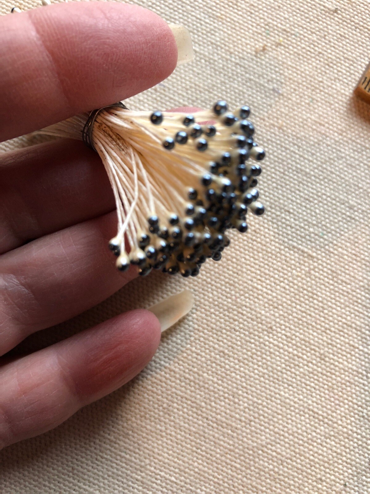 Vintage Millinery Flower Black Silver Gray Stamen 2 bunch Lot Unused Stock HzN