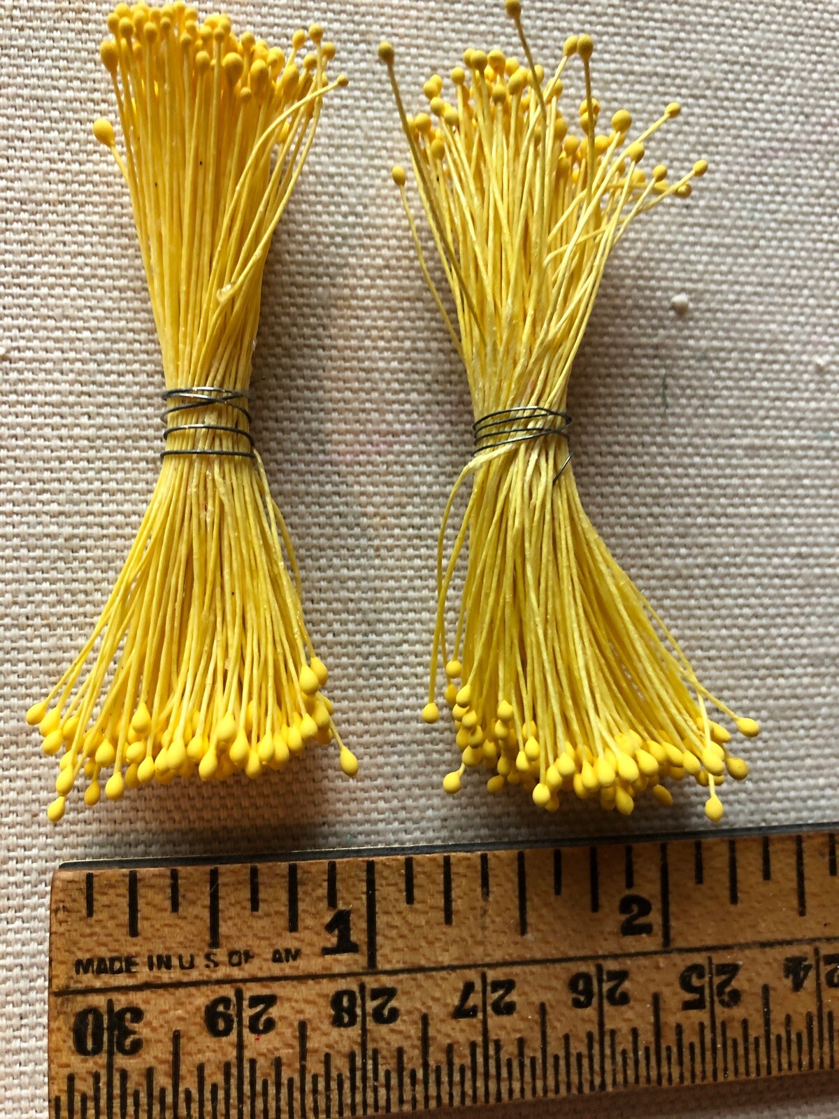 Vintage Millinery Flower all Yellow fine Stamen 2 bunch Lot Unused Stock HzQ