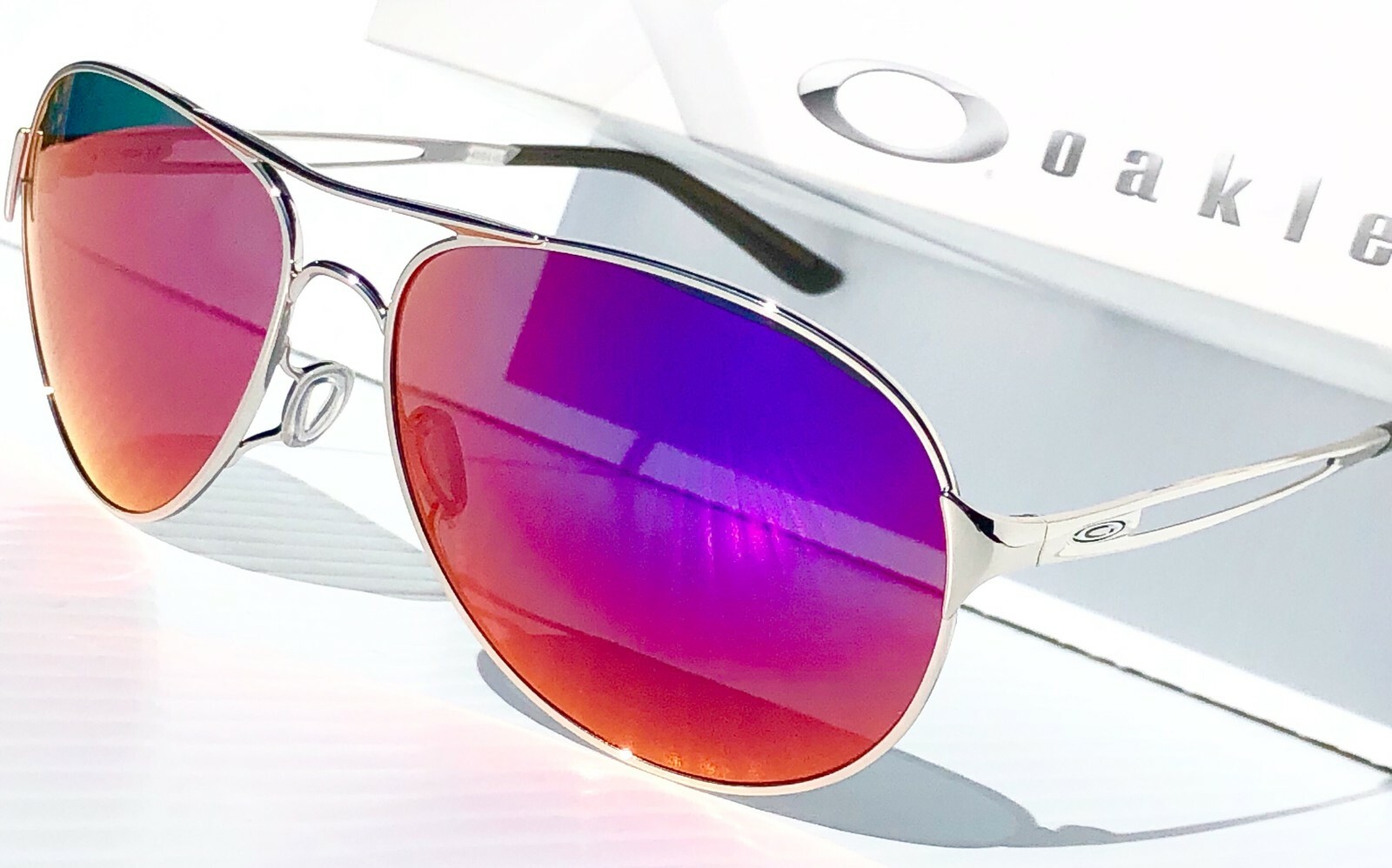 NEW Oakley CAVEAT Silver POLARIZED Galaxy Magenta Pink Lens Sunglass 4054