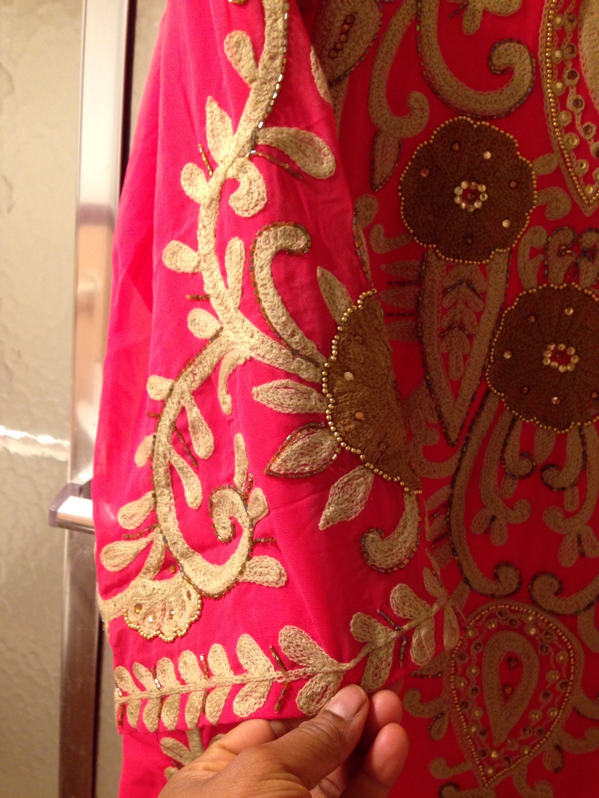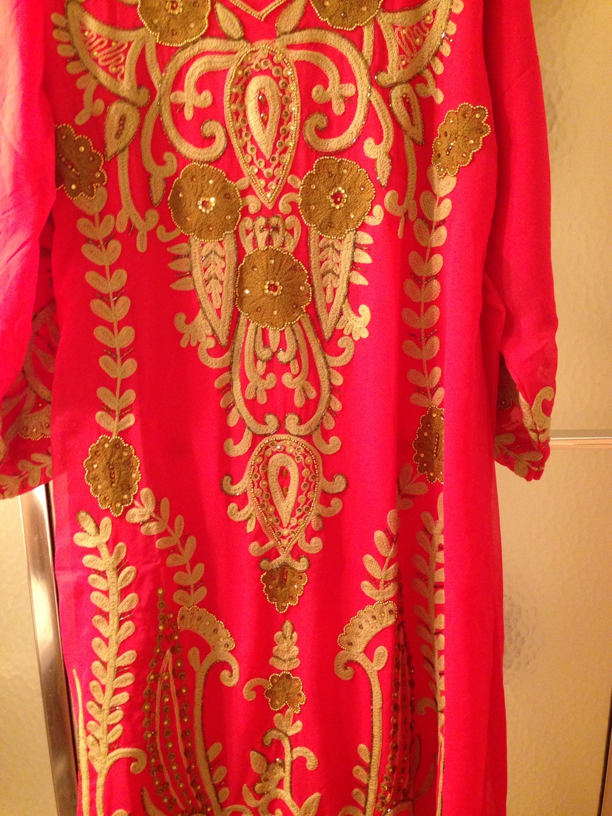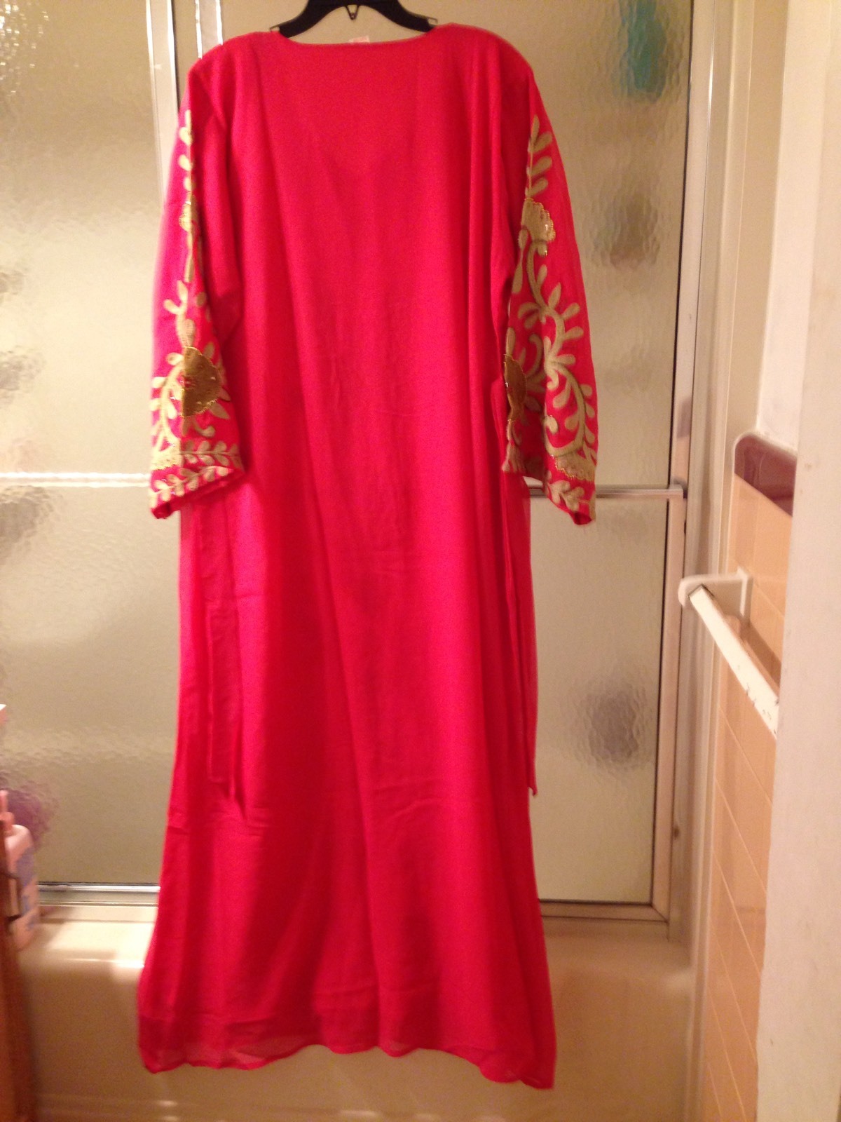 как выглядит NWOT Pink Kaftan; L M sizes ; Maxi; Embroidered; Long Sleeve; Chiffon 90 фото