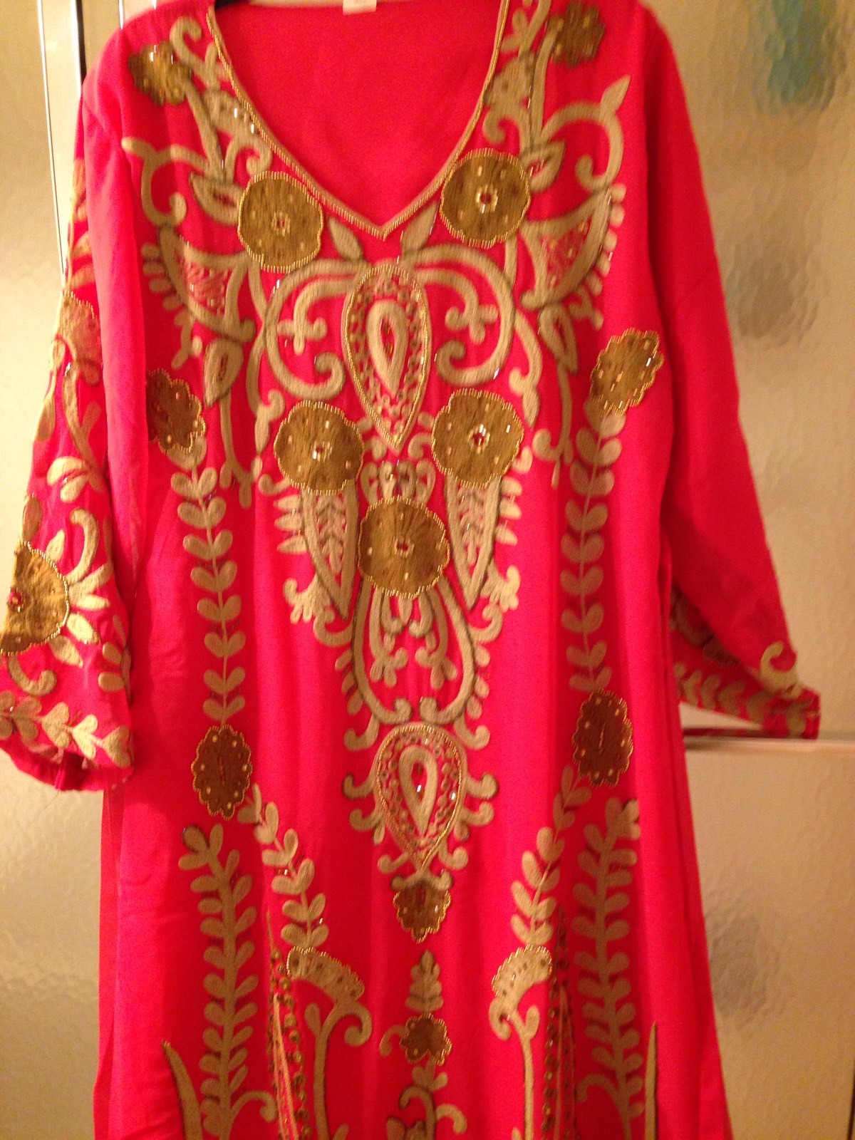 NWOT Pink Kaftan; L M sizes ; Maxi; Embroidered; Long Sleeve; Chiffon 90