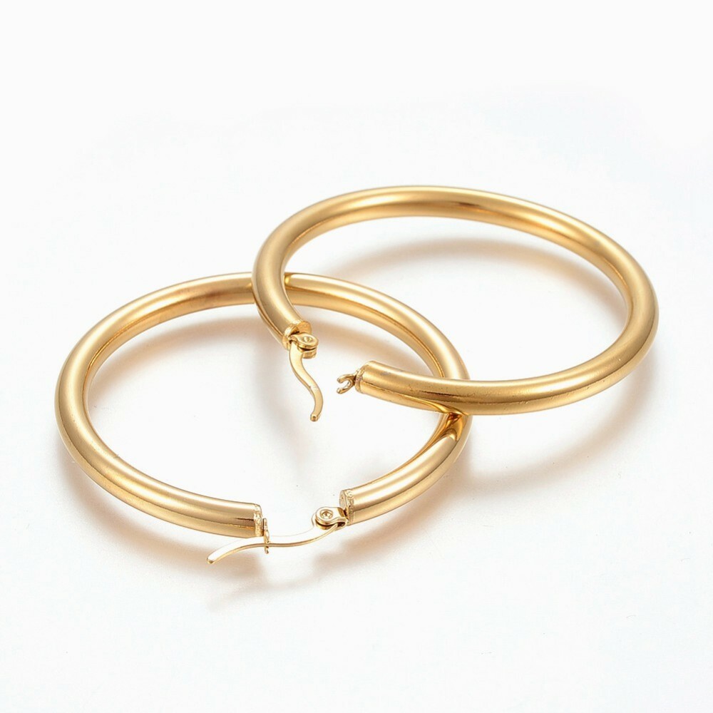 304 Stainless Steel Hoop Earrings Gold 50x48x4mm Pin 1x0.8mm P584