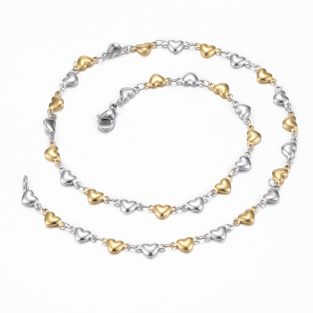 как выглядит Stainless Steel Heart Set Necklace Bracelets Lobster Gold Silver 17.72 P719 фото