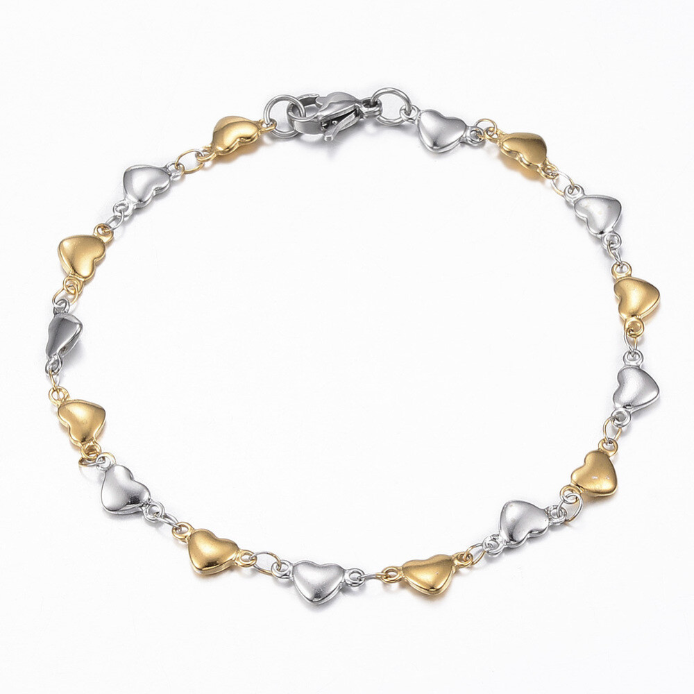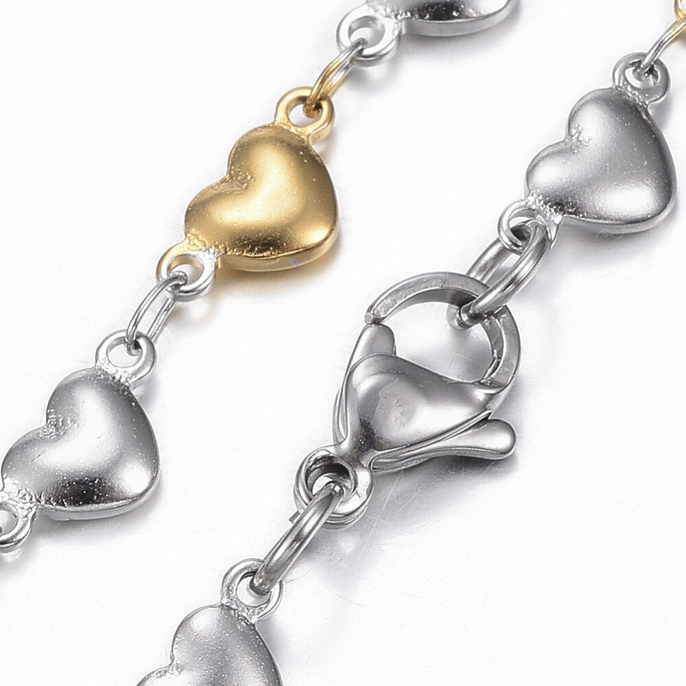 Stainless Steel Heart Set Necklace Bracelets Lobster Gold Silver 17.72 P719