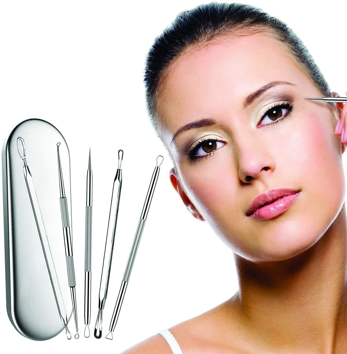 Acne Blackhead Removal Tool Surgical Grade Stainless Steel w/ Case 5 Piece