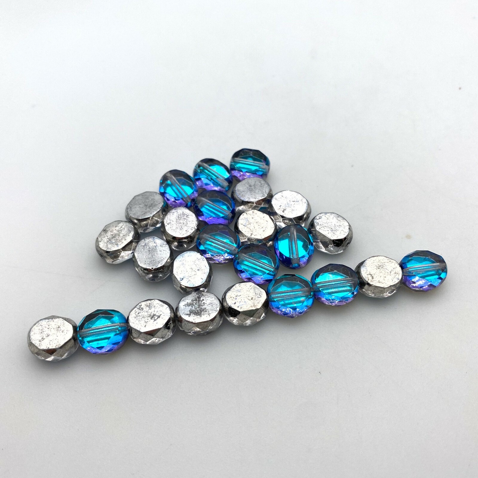 Faceted Blue, Purple Silver Table Cut Czech Glass Beads 9x10mm BCG72