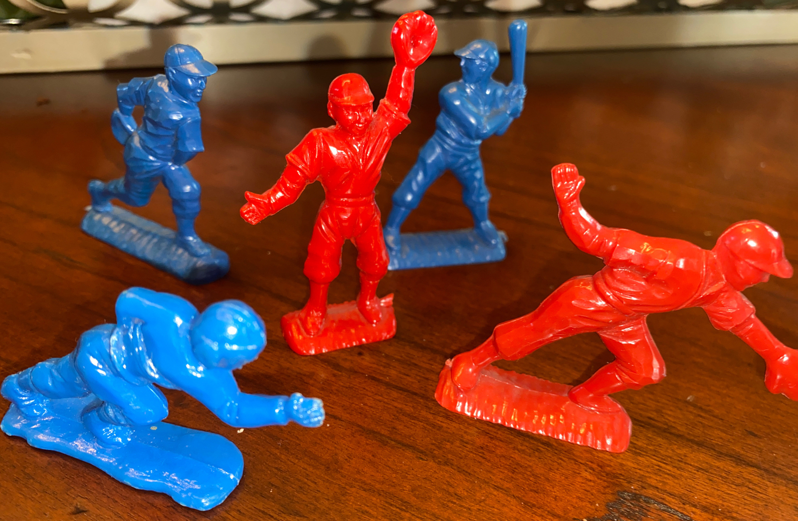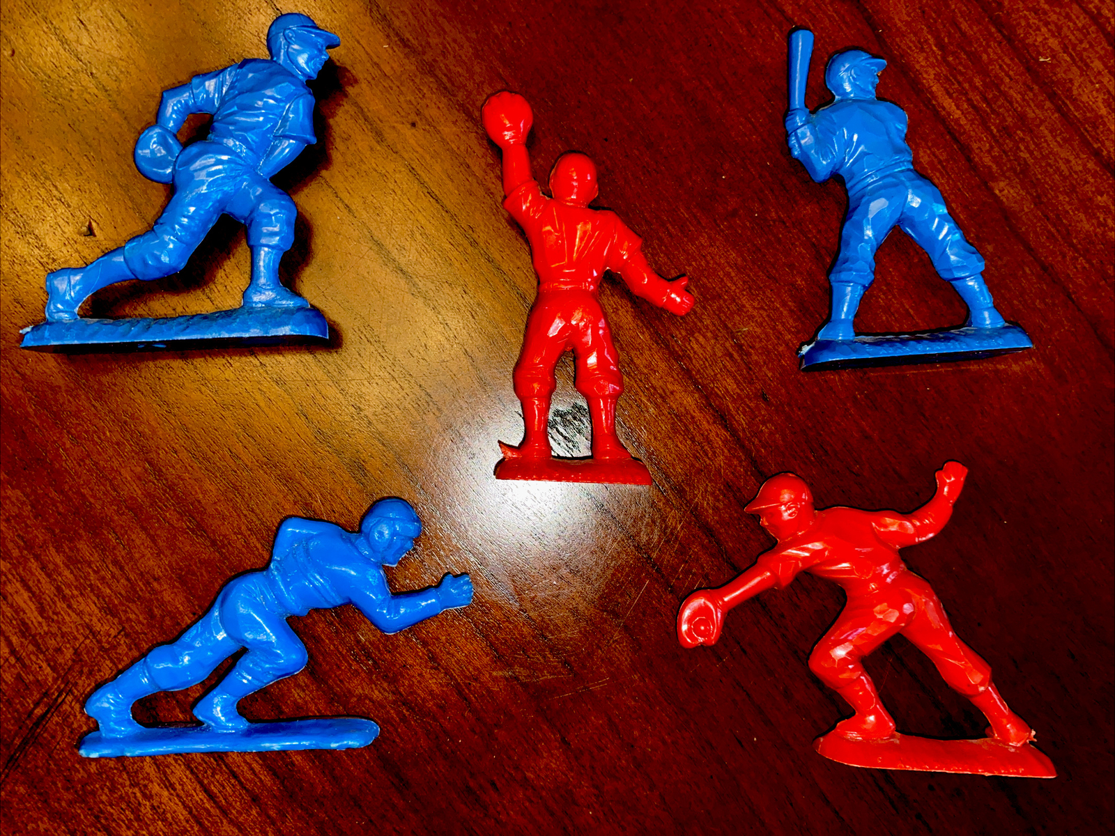 Vintage Ajax Baseball Football Hard Plastic 2 Figures Lot of 4 Red And Blue