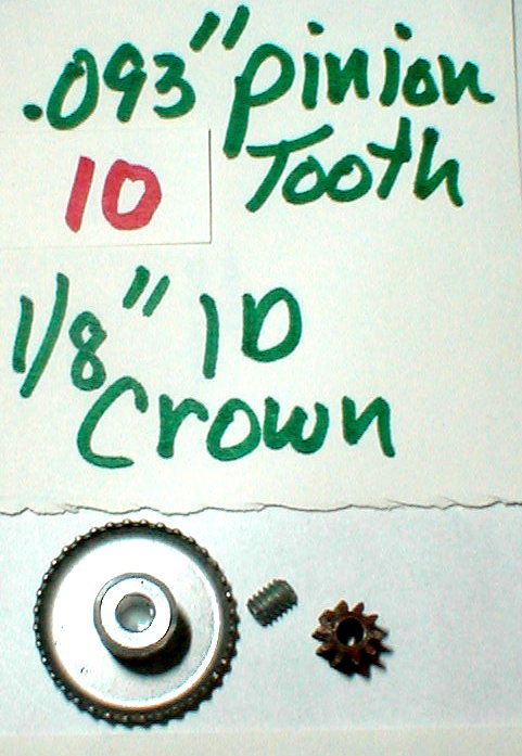 Item Specifics: 36 T Crown & 10 T Pinion, 48 Pitch, .093 Armature Shaft