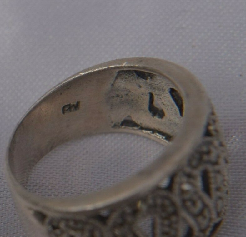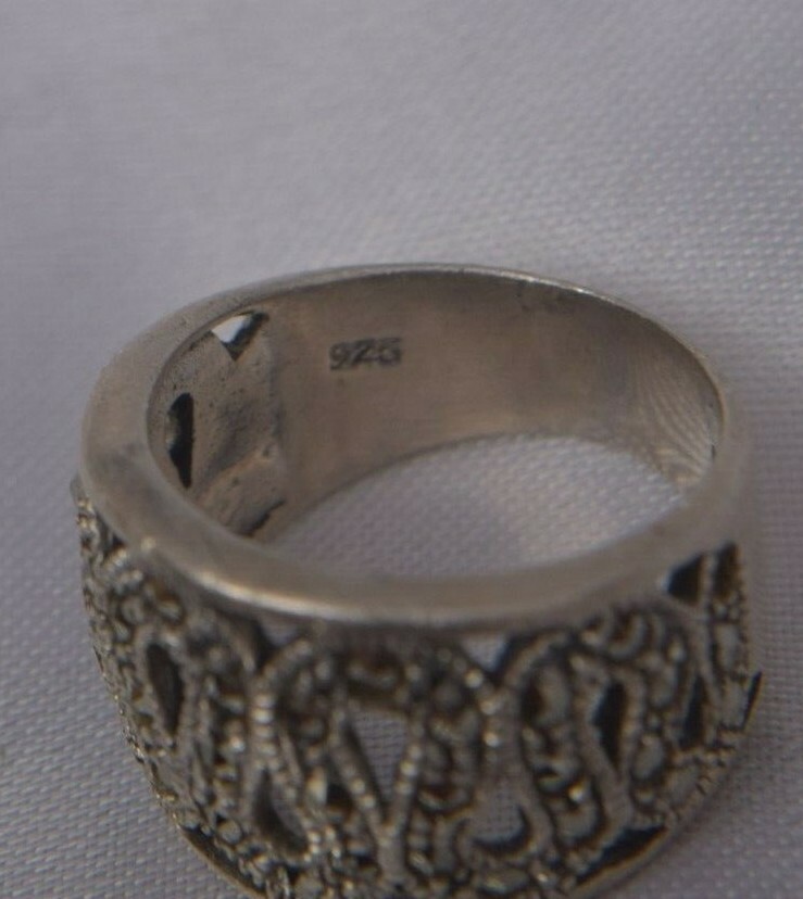 как выглядит Pretty Vintage Sterling Silver 925 Wide Ladies Bali Ring/Band Green Gyms Sz 5.5 фото