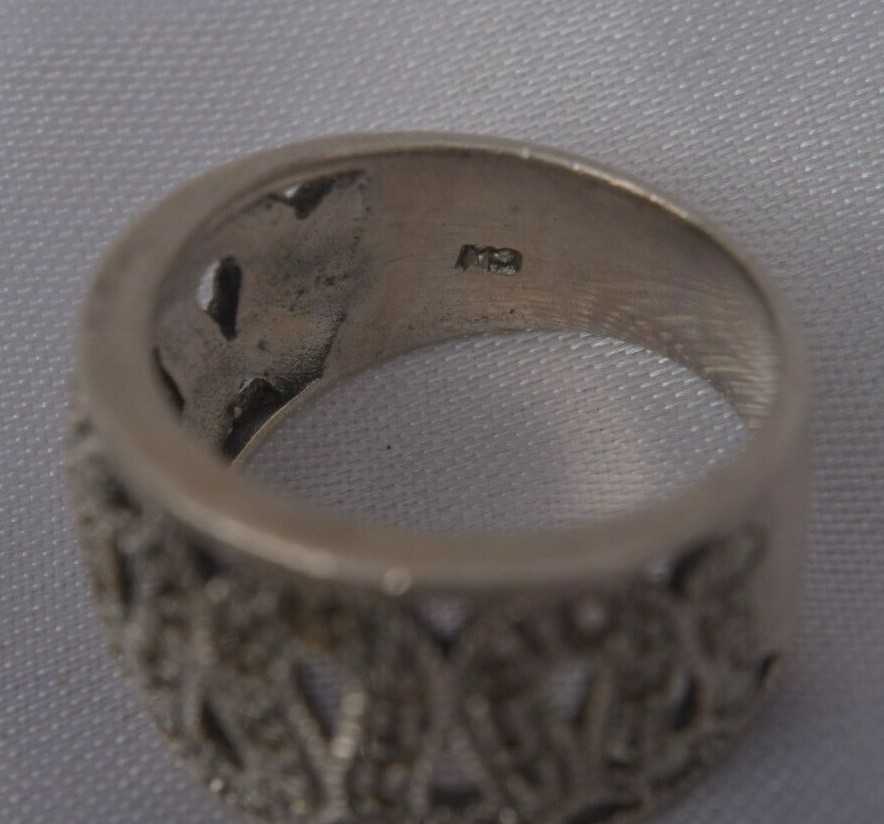 Pretty Vintage Sterling Silver 925 Wide Ladies Bali Ring/Band Green Gyms Sz 5.5
