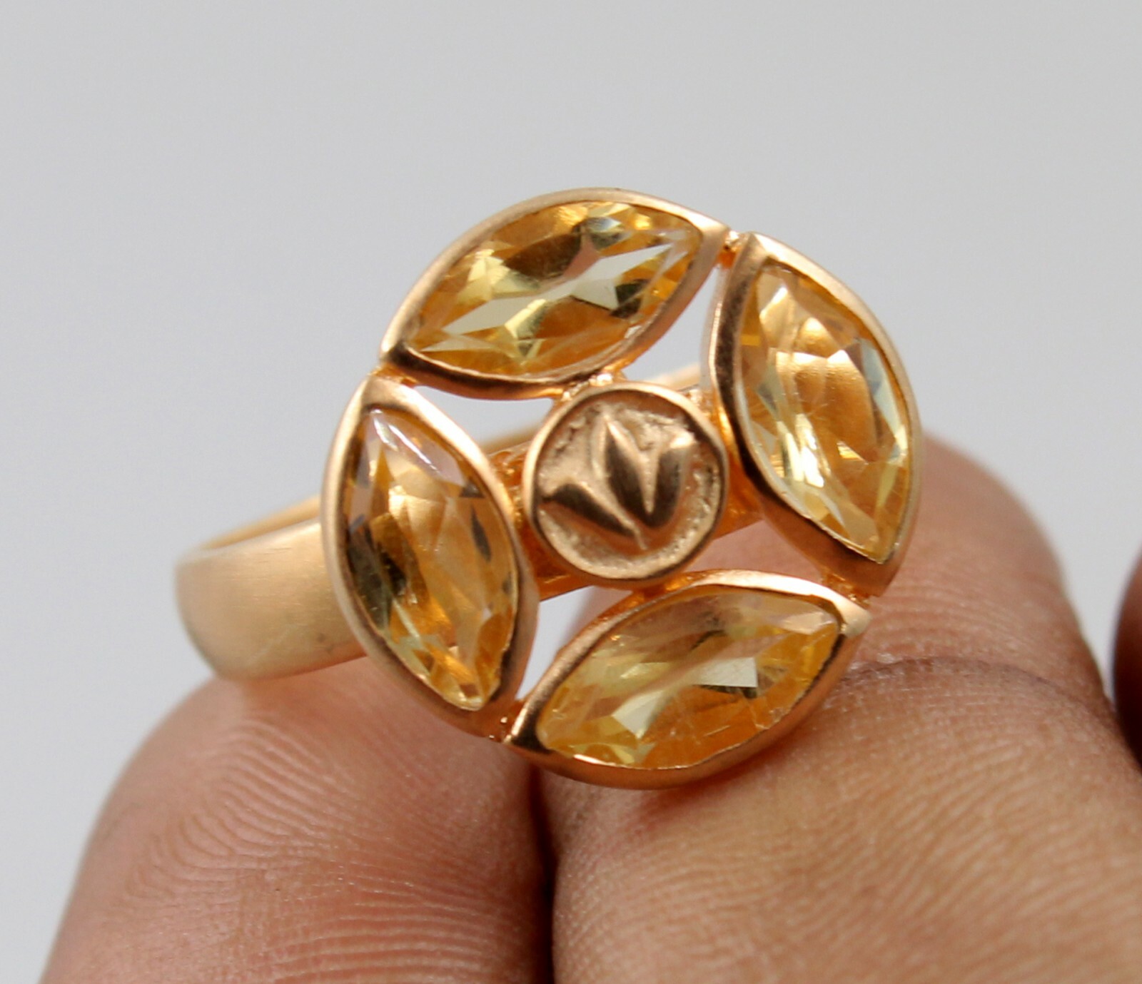 как выглядит Yellow Citrine Rose Gold Plated Ring Size 8 Solid 925 Sterling Silver Jewelry фото
