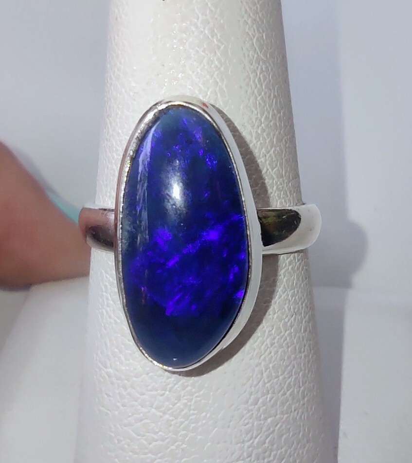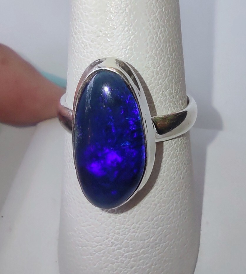 6.53ct NEW Genuine Natural Australian Opal .925 Sterling Silver Ring