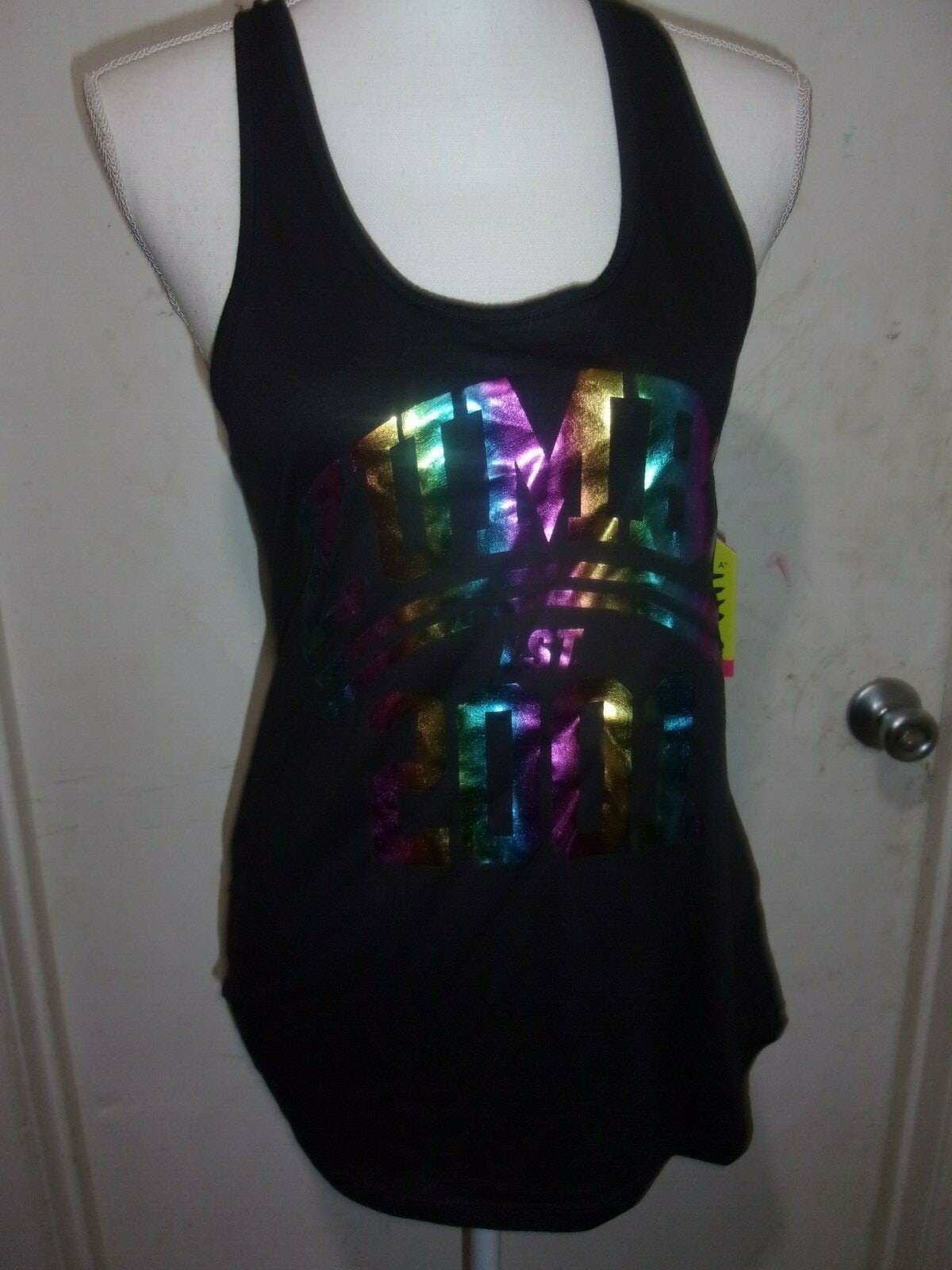 Zumba Forever Loose Tank Top Metallic Rainbow Print - Black size XS B209