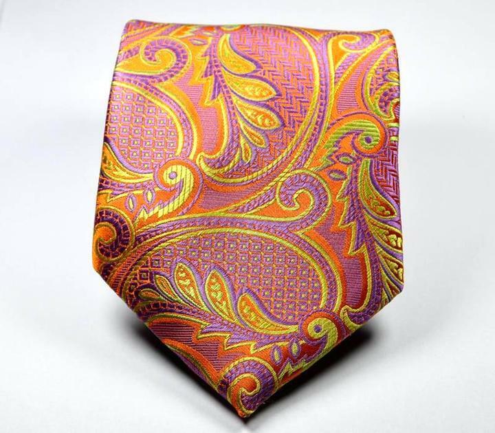 как выглядит Hot Classic Paisley Yellow Purple JACQUARD WOVEN 100 Silk Mens Tie Necktie фото