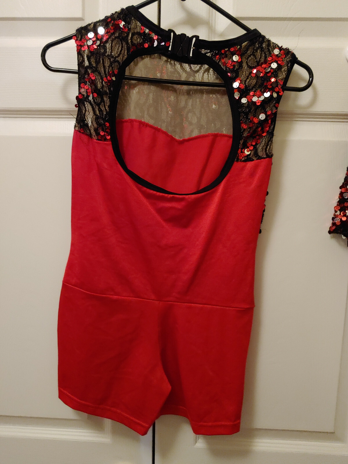 Girl Costume Gallery Show Stopper Red Black Sequin Unitard Skirt Size XLC 17328