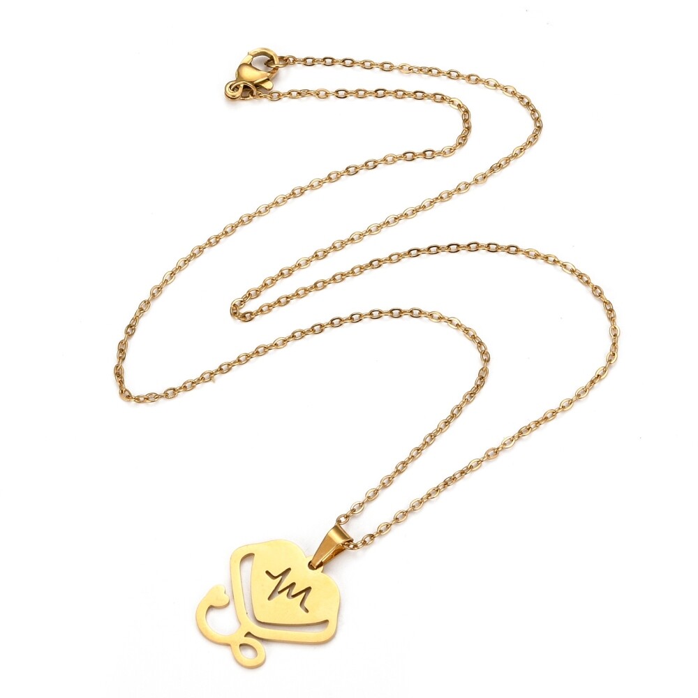 как выглядит Stainless Steel Set Pendant Necklace Earrings Heart 15.7" 9.5x9.5x1mm 0.7mm Z805 фото