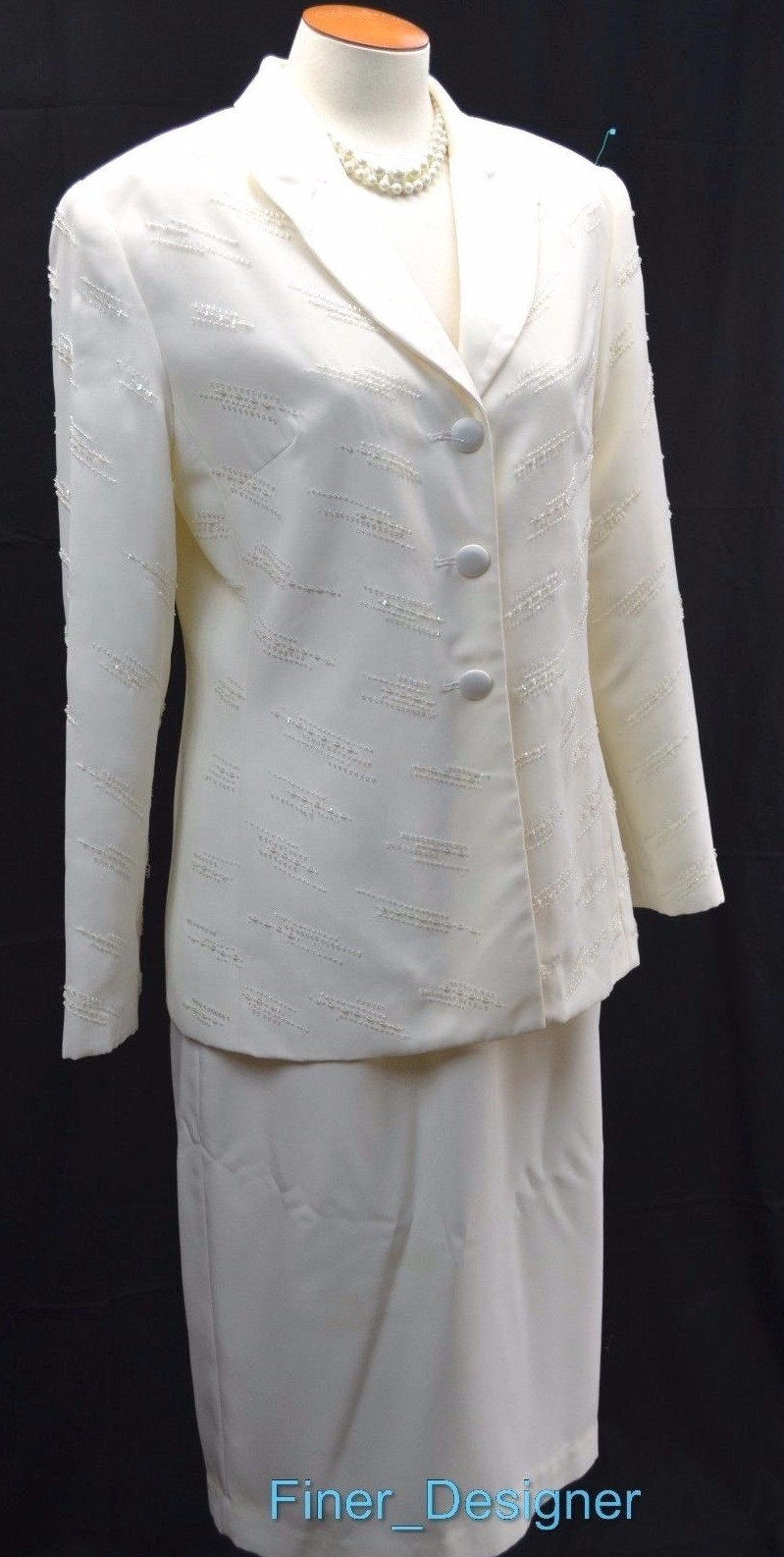 как выглядит ST. ANTHONY EVENING ivory beaded church skirt suit jacket MOB Blazer set SIZE 8 фото