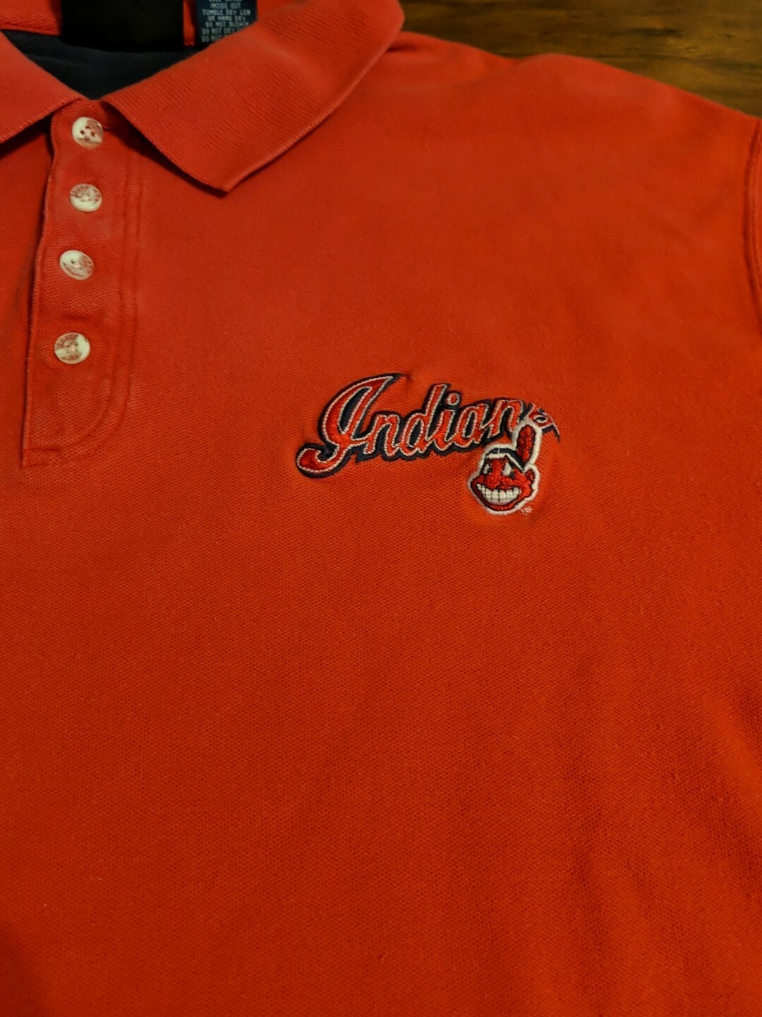 как выглядит Vtg Cleveland Indians Embroidered Polo Shirt by Crable Sportswear - Men